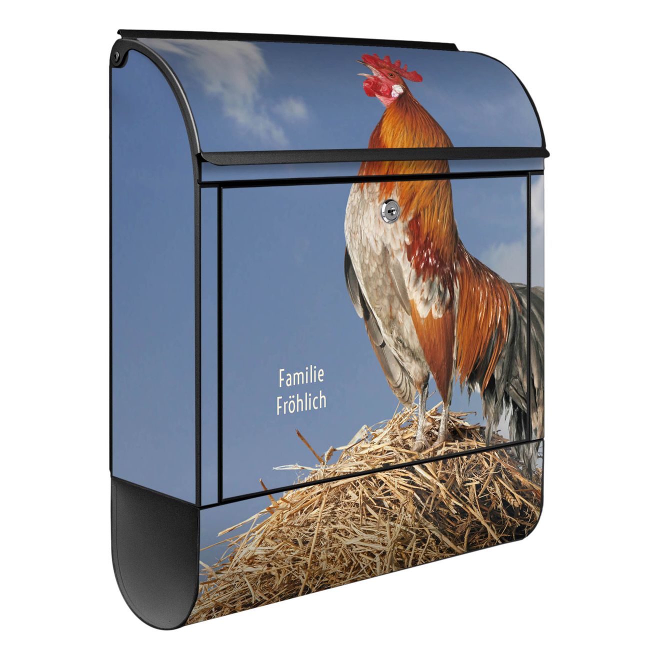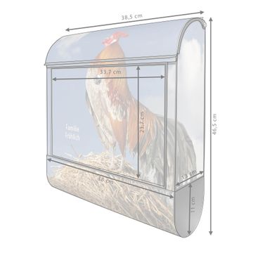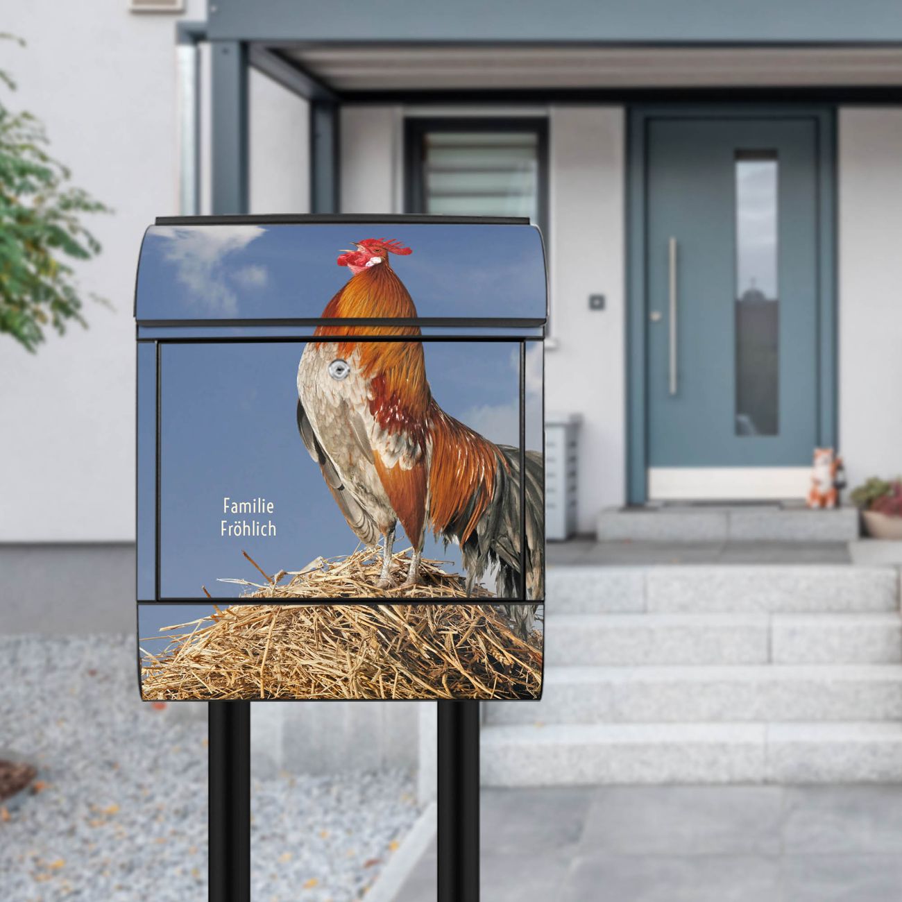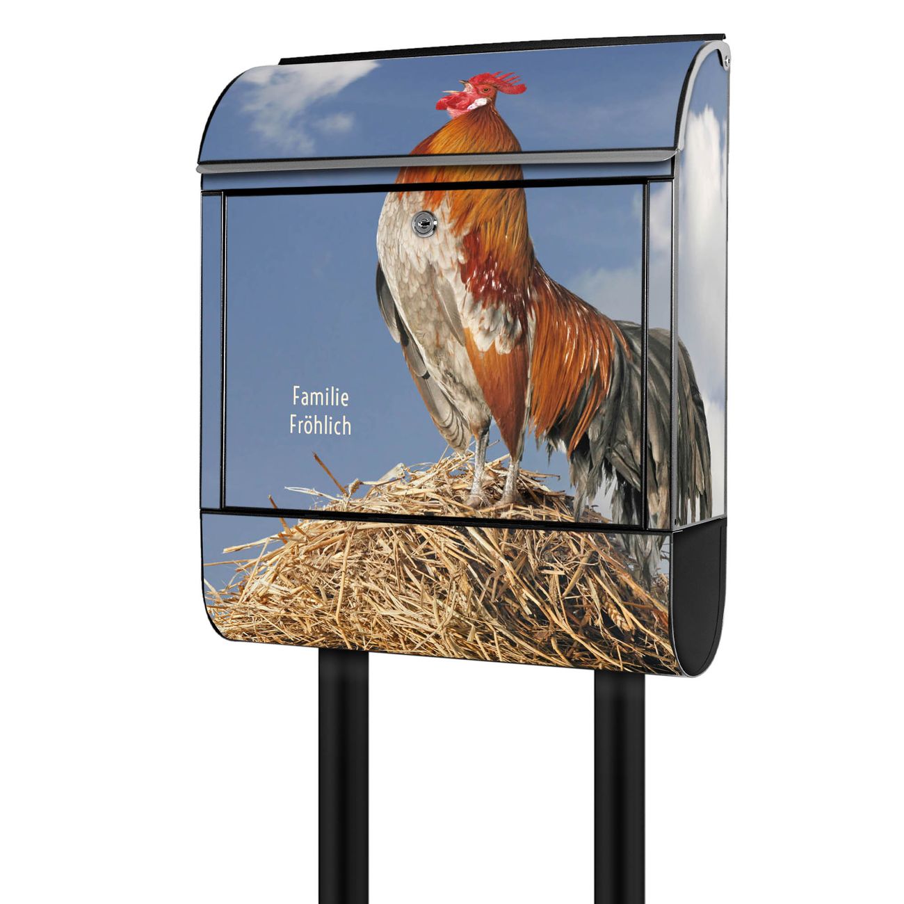 Der banjado Standbriefkasten mit Motiv Motiv Hahn kombiniert großzügigen Stauraum mit modernem Design. Durch das geräumige Fach finden auch große A4-Sendungen problemlos Platz. Die integrierte Zeitungsrolle sorgt dafür, dass Tageszeitungen und Magazine separat und griffbereit untergebracht sind. Der pulverbeschichtete Standfuß ist farblich passend zum Briefkasten gestaltet und sorgt für ein stimmiges Gesamtbild. Mit dem individuellen Motiv setzen Sie einen optischen Akzent, der sowohl praktisch als auch dekorativ ist.
