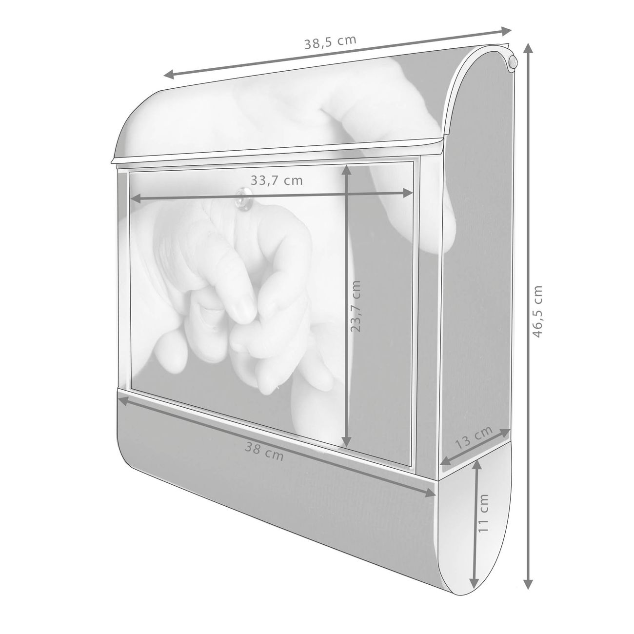 Der banjado Standbriefkasten mit Motiv Motiv Hands kombiniert großzügigen Stauraum mit modernem Design. Durch das geräumige Fach finden auch große A4-Sendungen problemlos Platz. Die integrierte Zeitungsrolle sorgt dafür, dass Tageszeitungen und Magazine separat und griffbereit untergebracht sind. Der pulverbeschichtete Standfuß ist farblich passend zum Briefkasten gestaltet und sorgt für ein stimmiges Gesamtbild. Mit dem individuellen Motiv setzen Sie einen optischen Akzent, der sowohl praktisch als auch dekorativ ist.