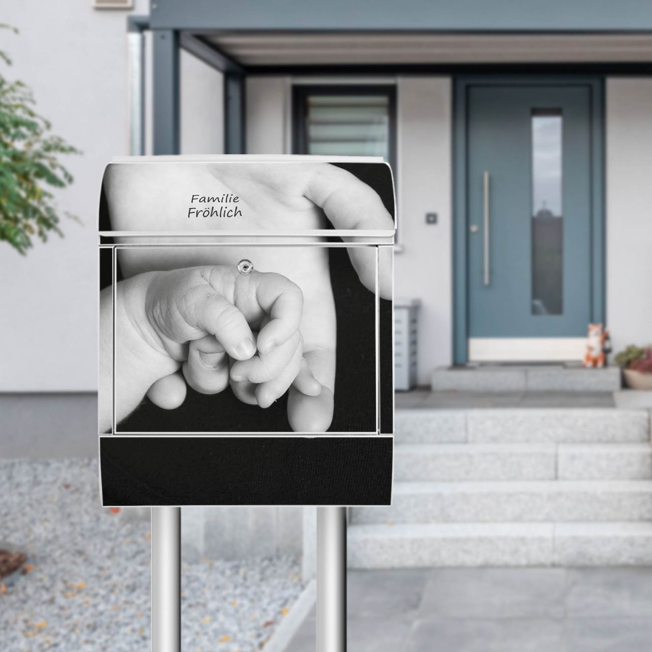Der Vorschau-Text Familie Fröhlich wird durch Ihren persönlichen Wunschtext ersetzt. Die Schriftart und Farbe bleiben gleich wie in der Vorschau.