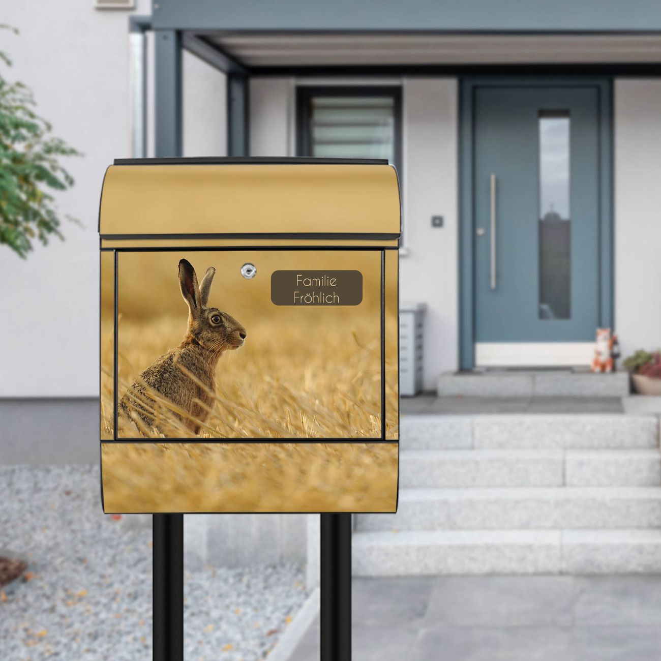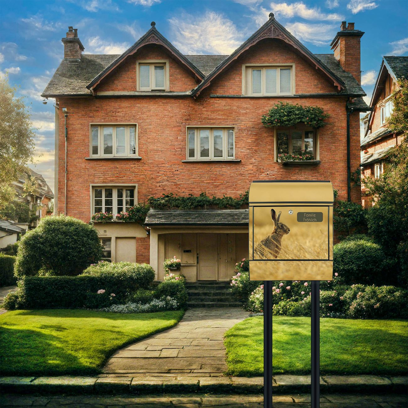 Der banjado Standbriefkasten mit Motiv Motiv Hase kombiniert großzügigen Stauraum mit modernem Design. Durch das geräumige Fach finden auch große A4-Sendungen problemlos Platz. Die integrierte Zeitungsrolle sorgt dafür, dass Tageszeitungen und Magazine separat und griffbereit untergebracht sind. Der pulverbeschichtete Standfuß ist farblich passend zum Briefkasten gestaltet und sorgt für ein stimmiges Gesamtbild. Mit dem individuellen Motiv setzen Sie einen optischen Akzent, der sowohl praktisch als auch dekorativ ist.