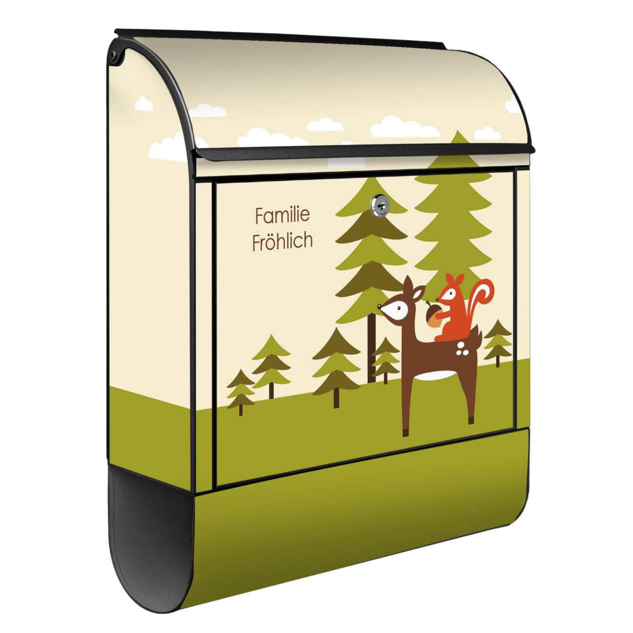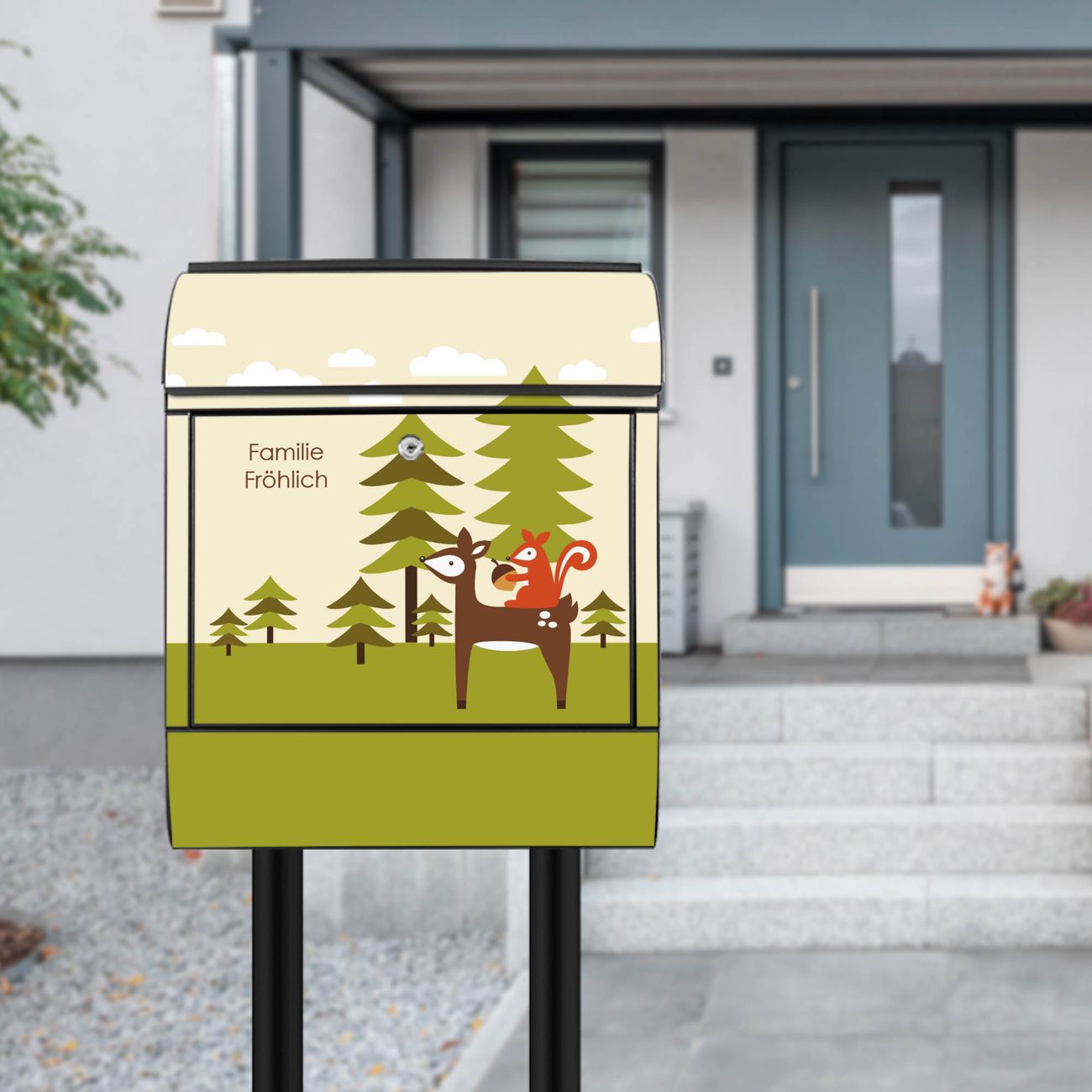 Der Vorschau-Text Familie Fröhlich wird durch Ihren persönlichen Wunschtext ersetzt. Die Schriftart und Farbe bleiben gleich wie in der Vorschau.