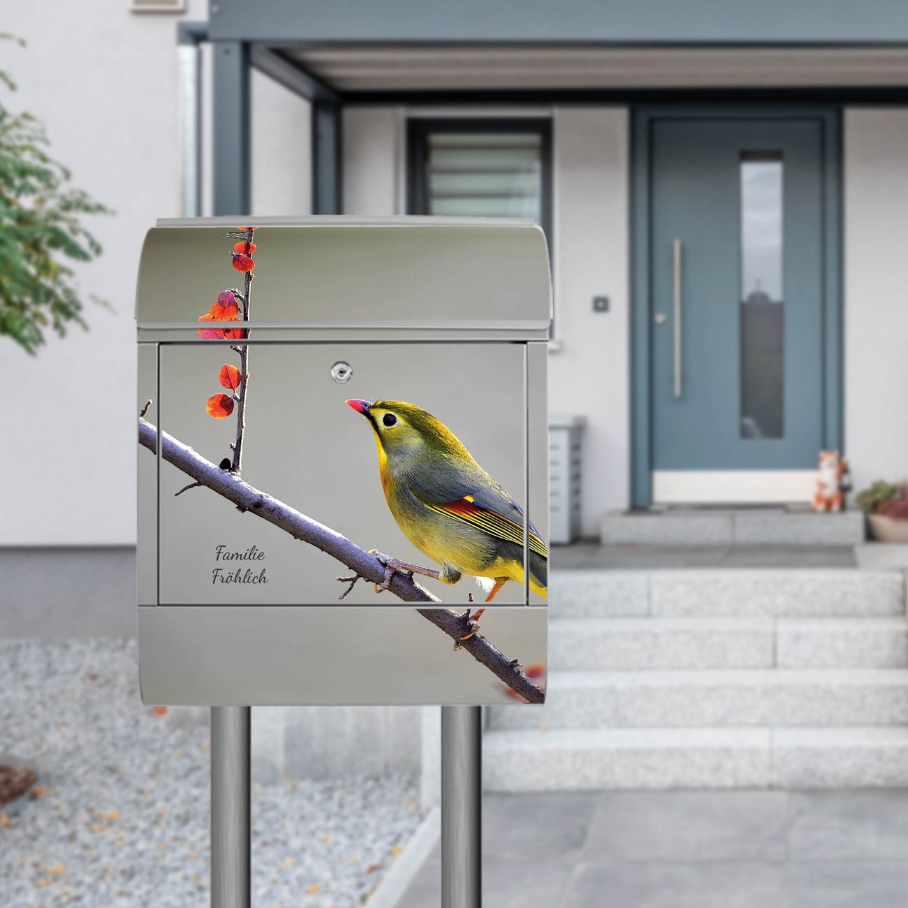 Standbriefkasten Stahl Herbst Vogel