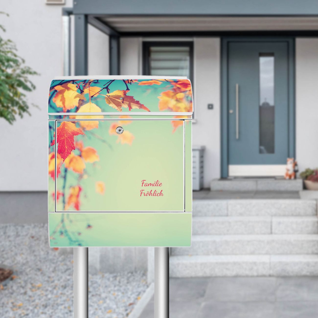 Der banjado Standbriefkasten mit Motiv Motiv Herbst kombiniert großzügigen Stauraum mit modernem Design. Durch das geräumige Fach finden auch große A4-Sendungen problemlos Platz. Die integrierte Zeitungsrolle sorgt dafür, dass Tageszeitungen und Magazine separat und griffbereit untergebracht sind. Der pulverbeschichtete Standfuß ist farblich passend zum Briefkasten gestaltet und sorgt für ein stimmiges Gesamtbild. Mit dem individuellen Motiv setzen Sie einen optischen Akzent, der sowohl praktisch als auch dekorativ ist.