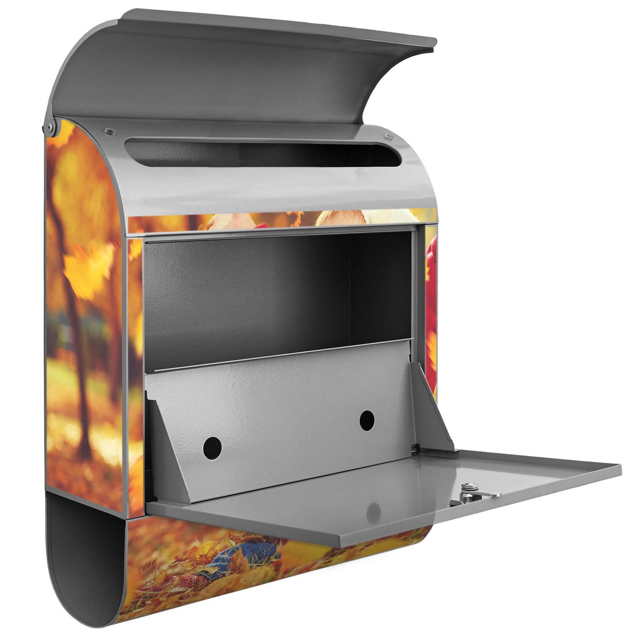Der banjado Standbriefkasten mit Motiv Motiv Herbstfreude kombiniert großzügigen Stauraum mit modernem Design. Durch das geräumige Fach finden auch große A4-Sendungen problemlos Platz. Die integrierte Zeitungsrolle sorgt dafür, dass Tageszeitungen und Magazine separat und griffbereit untergebracht sind. Der pulverbeschichtete Standfuß ist farblich passend zum Briefkasten gestaltet und sorgt für ein stimmiges Gesamtbild. Mit dem individuellen Motiv setzen Sie einen optischen Akzent, der sowohl praktisch als auch dekorativ ist.