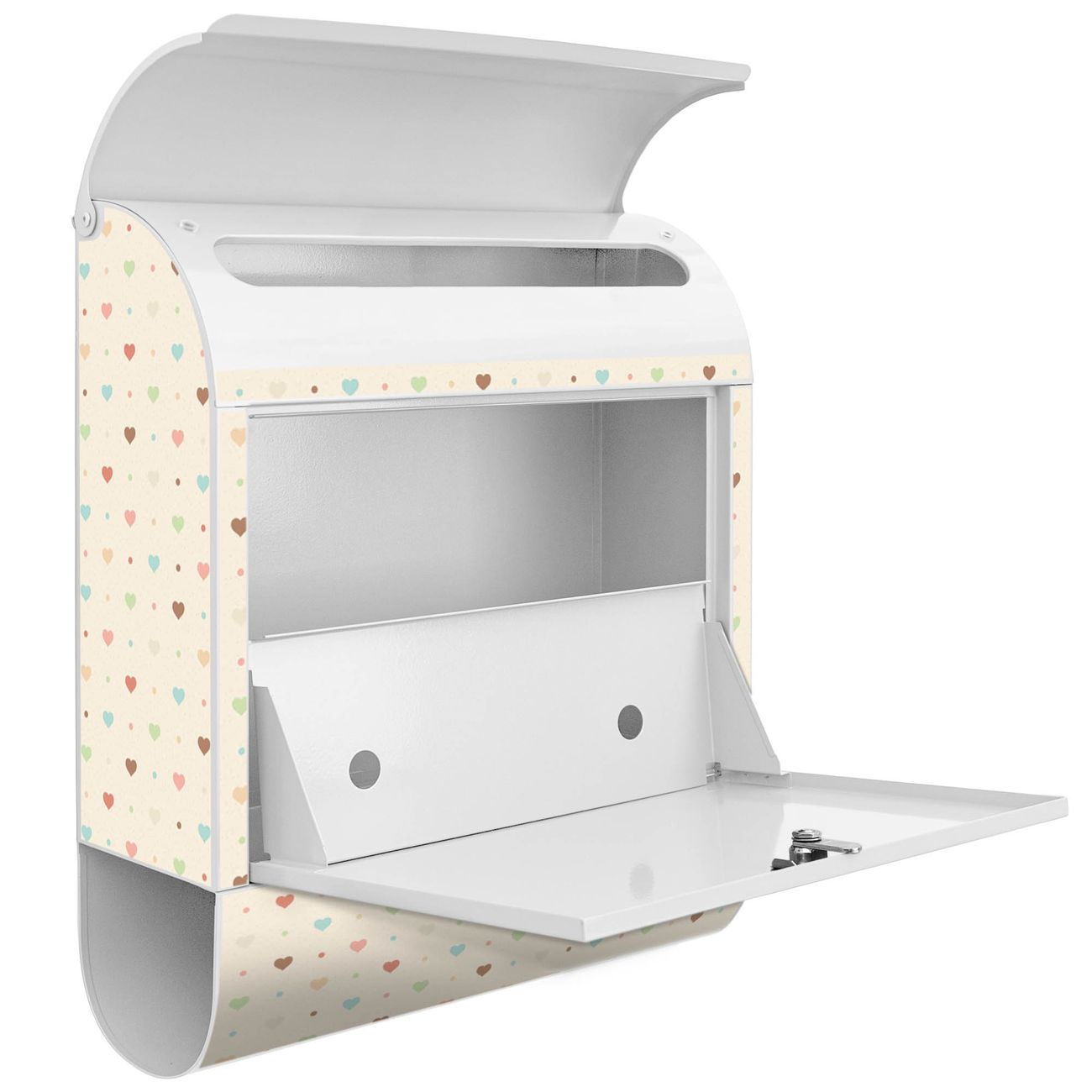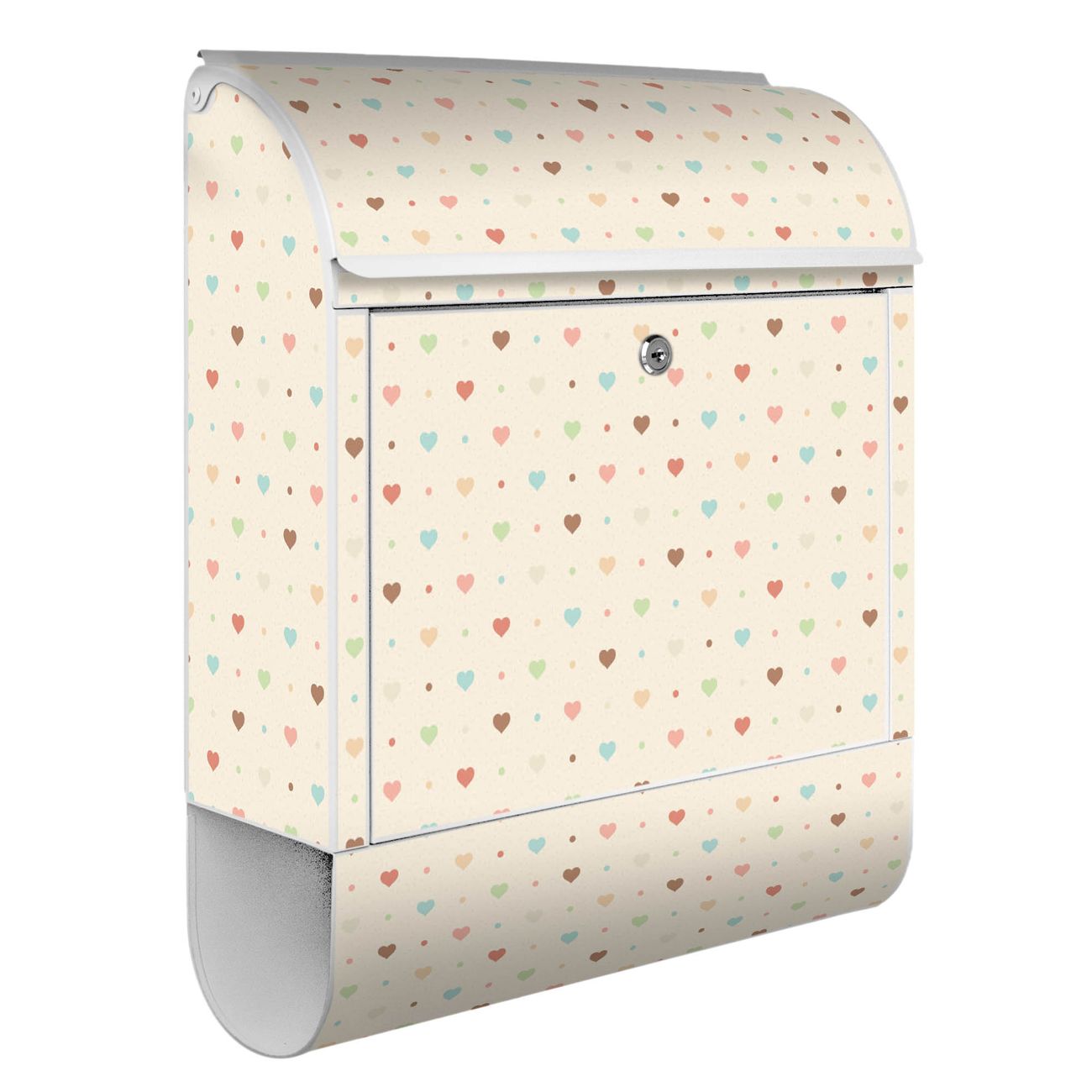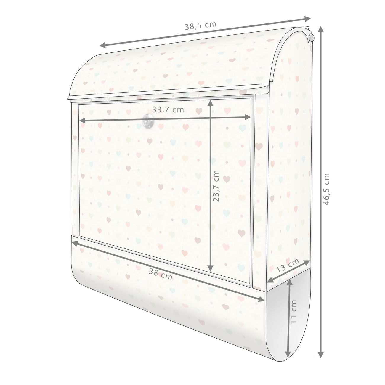 Der banjado Standbriefkasten mit Motiv Motiv Herzen bunt kombiniert großzügigen Stauraum mit modernem Design. Durch das geräumige Fach finden auch große A4-Sendungen problemlos Platz. Die integrierte Zeitungsrolle sorgt dafür, dass Tageszeitungen und Magazine separat und griffbereit untergebracht sind. Der pulverbeschichtete Standfuß ist farblich passend zum Briefkasten gestaltet und sorgt für ein stimmiges Gesamtbild. Mit dem individuellen Motiv setzen Sie einen optischen Akzent, der sowohl praktisch als auch dekorativ ist.