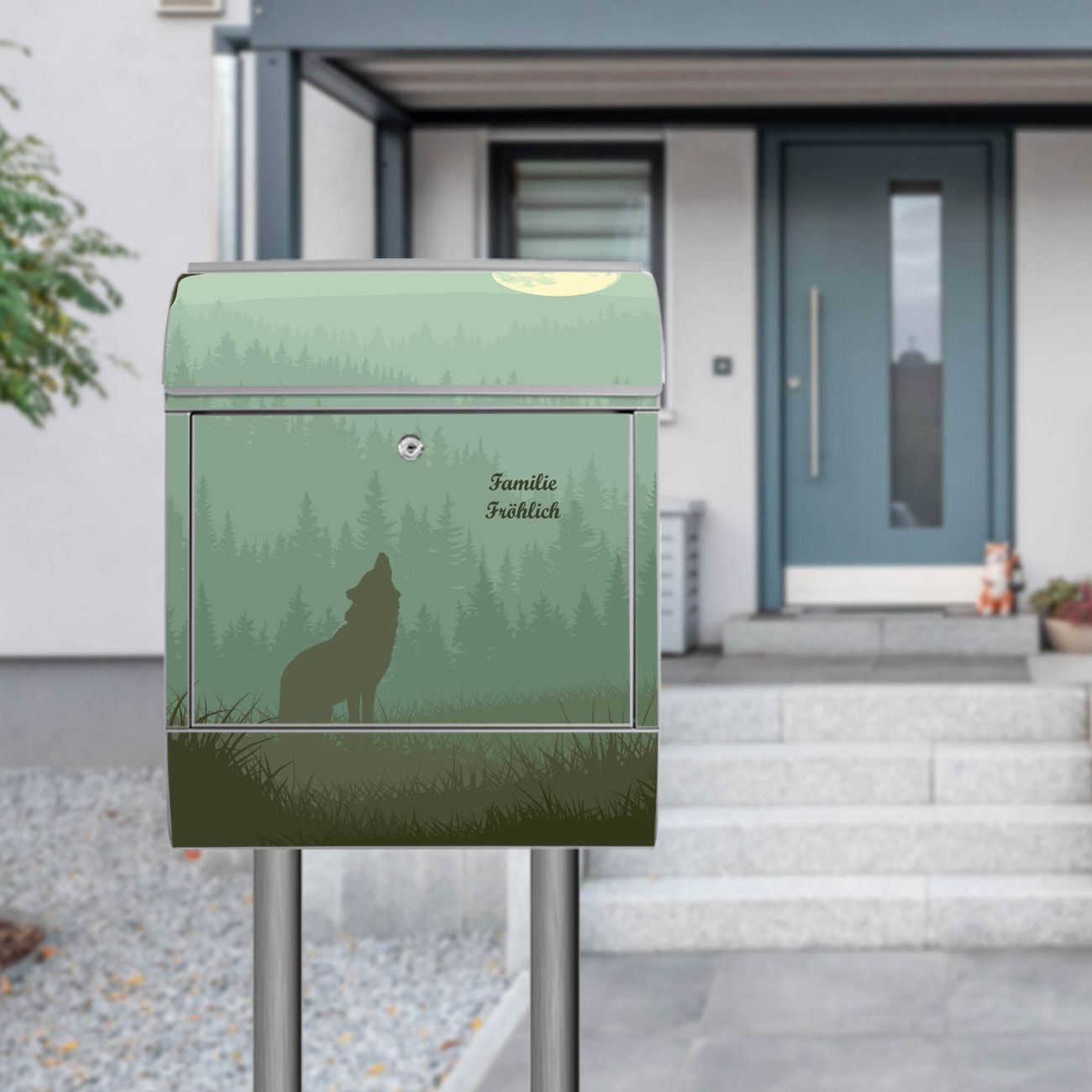 Der banjado Standbriefkasten mit Motiv Motiv Heulender Wolf kombiniert großzügigen Stauraum mit modernem Design. Durch das geräumige Fach finden auch große A4-Sendungen problemlos Platz. Die integrierte Zeitungsrolle sorgt dafür, dass Tageszeitungen und Magazine separat und griffbereit untergebracht sind. Der pulverbeschichtete Standfuß ist farblich passend zum Briefkasten gestaltet und sorgt für ein stimmiges Gesamtbild. Mit dem individuellen Motiv setzen Sie einen optischen Akzent, der sowohl praktisch als auch dekorativ ist.