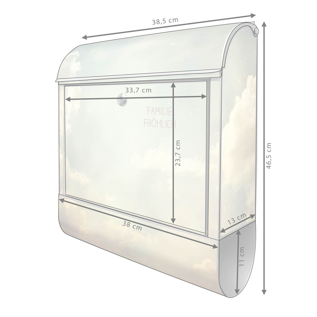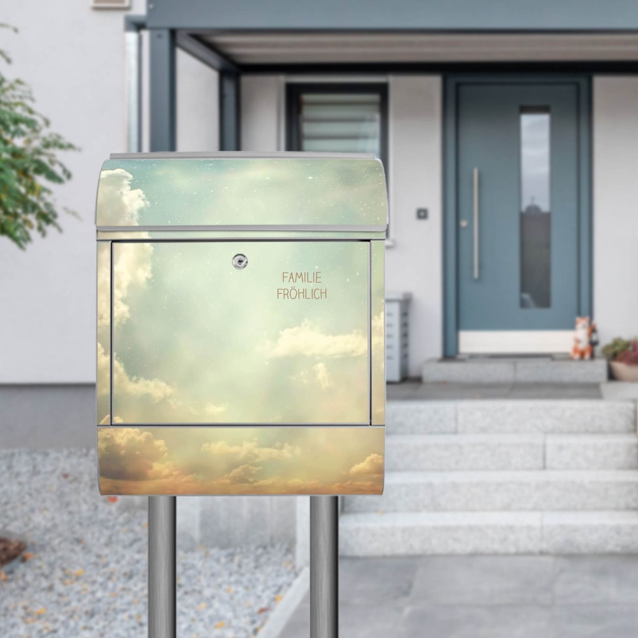 Der banjado Standbriefkasten mit Motiv Motiv Himmel Vintage kombiniert großzügigen Stauraum mit modernem Design. Durch das geräumige Fach finden auch große A4-Sendungen problemlos Platz. Die integrierte Zeitungsrolle sorgt dafür, dass Tageszeitungen und Magazine separat und griffbereit untergebracht sind. Der pulverbeschichtete Standfuß ist farblich passend zum Briefkasten gestaltet und sorgt für ein stimmiges Gesamtbild. Mit dem individuellen Motiv setzen Sie einen optischen Akzent, der sowohl praktisch als auch dekorativ ist.