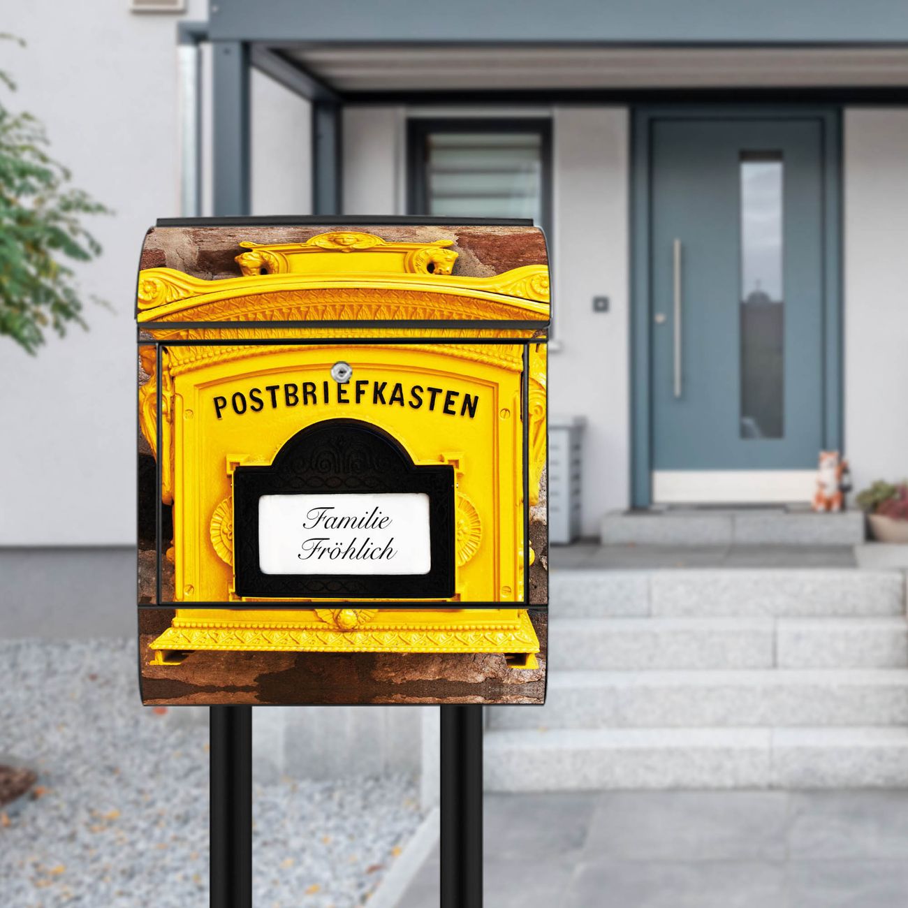 Der Standbriefkasten besteht aus pulverbeschichtetem Stahl und ist insgesamt ca. 161,5 x 47 x 16 cm groß. Das Motiv wird auf eine wetter- und UV-beständige Folie aufgebracht und mit einem robusten Schutzlaminat versiegelt. Damit bleibt die Farbbrillanz auch bei Sonne und Regen lange erhalten. Für einen sicheren Halt empfehlen wir, den Standbriefkasten mindestens 15 cm einzubetonieren. Jeder Briefkasten wird in Sachsen in einer kleinen Manufaktur von Hand veredelt - Sie erhalten ein Stück langlebige Handarbeit, das Funktionalität und Design vereint.