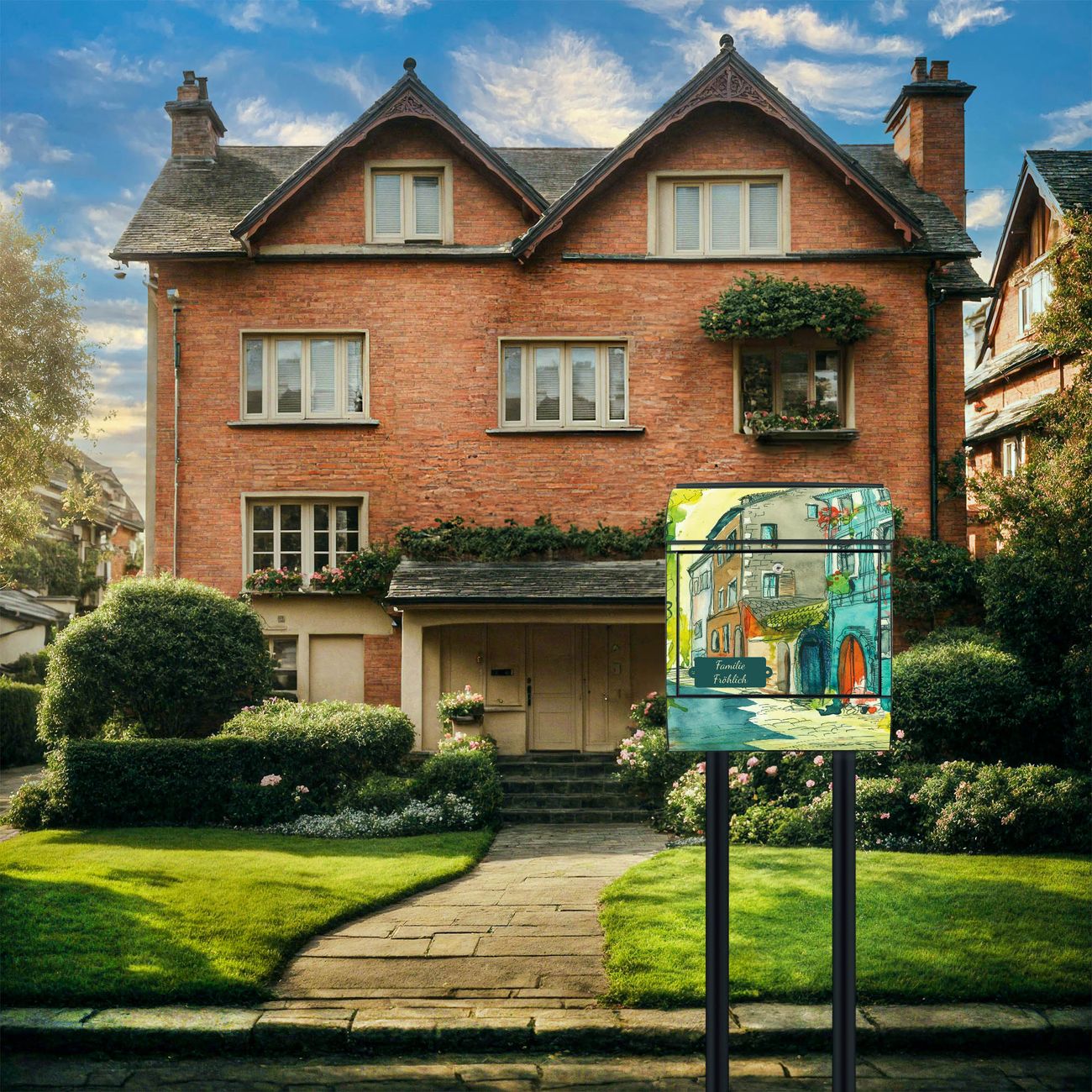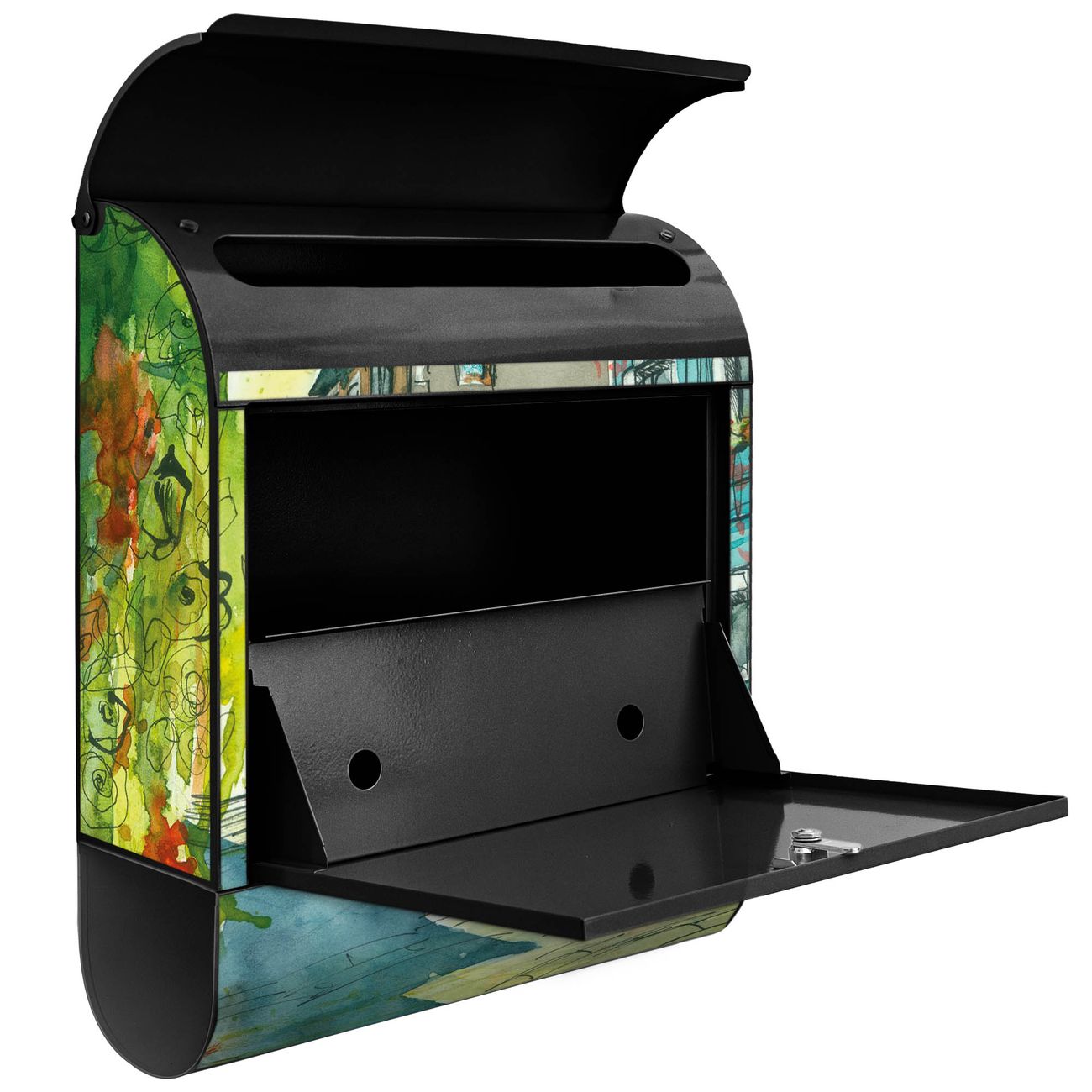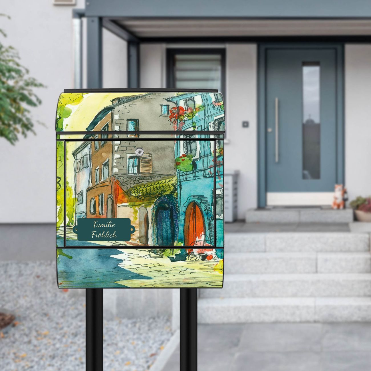 Der Standbriefkasten besteht aus pulverbeschichtetem Stahl und ist insgesamt ca. 161,5 x 47 x 16 cm groß. Das Motiv wird auf eine wetter- und UV-beständige Folie aufgebracht und mit einem robusten Schutzlaminat versiegelt. Damit bleibt die Farbbrillanz auch bei Sonne und Regen lange erhalten. Für einen sicheren Halt empfehlen wir, den Standbriefkasten mindestens 15 cm einzubetonieren. Jeder Briefkasten wird in Sachsen in einer kleinen Manufaktur von Hand veredelt - Sie erhalten ein Stück langlebige Handarbeit, das Funktionalität und Design vereint.