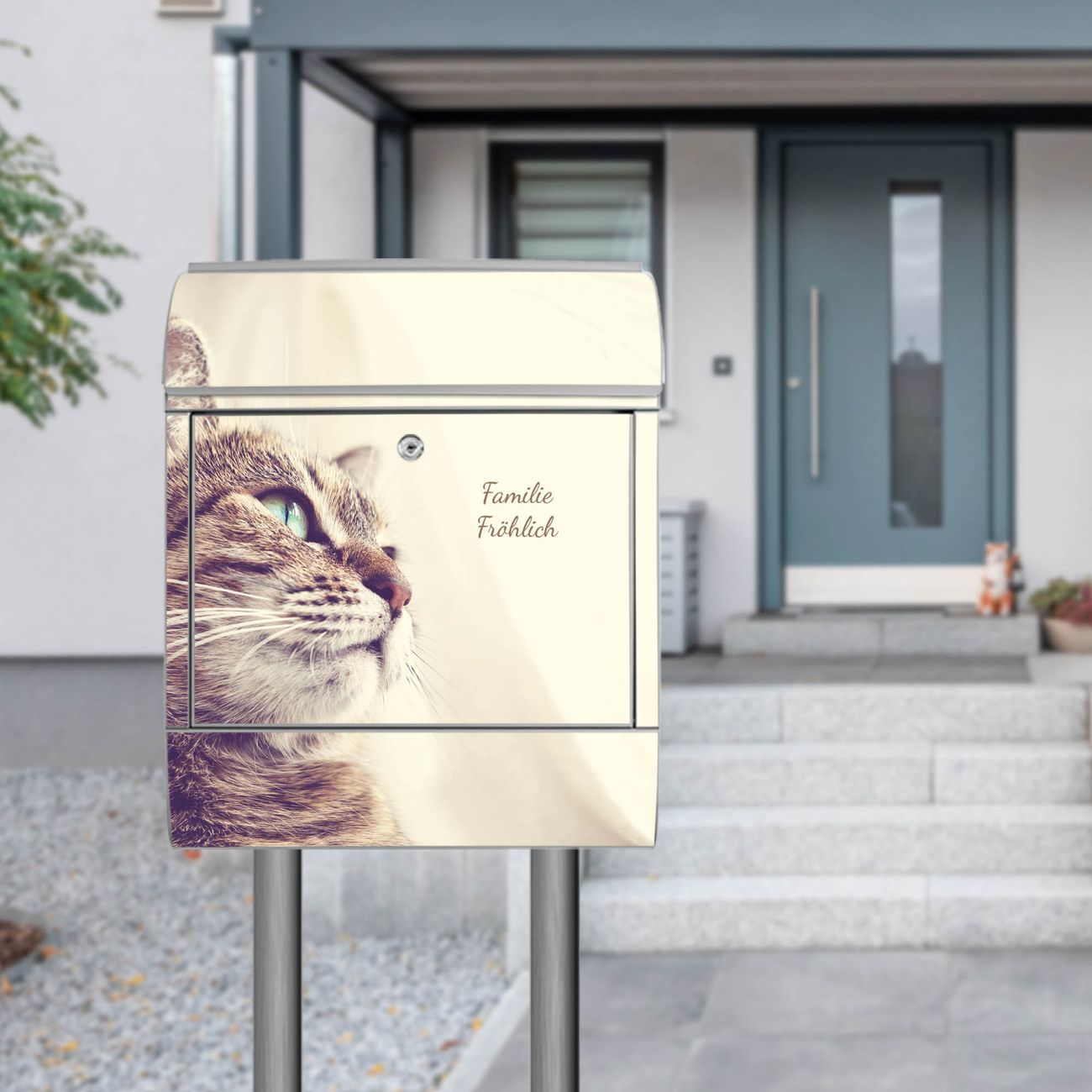 Der Vorschau-Text Familie Fröhlich wird durch Ihren persönlichen Wunschtext ersetzt. Die Schriftart und Farbe bleiben gleich wie in der Vorschau.
