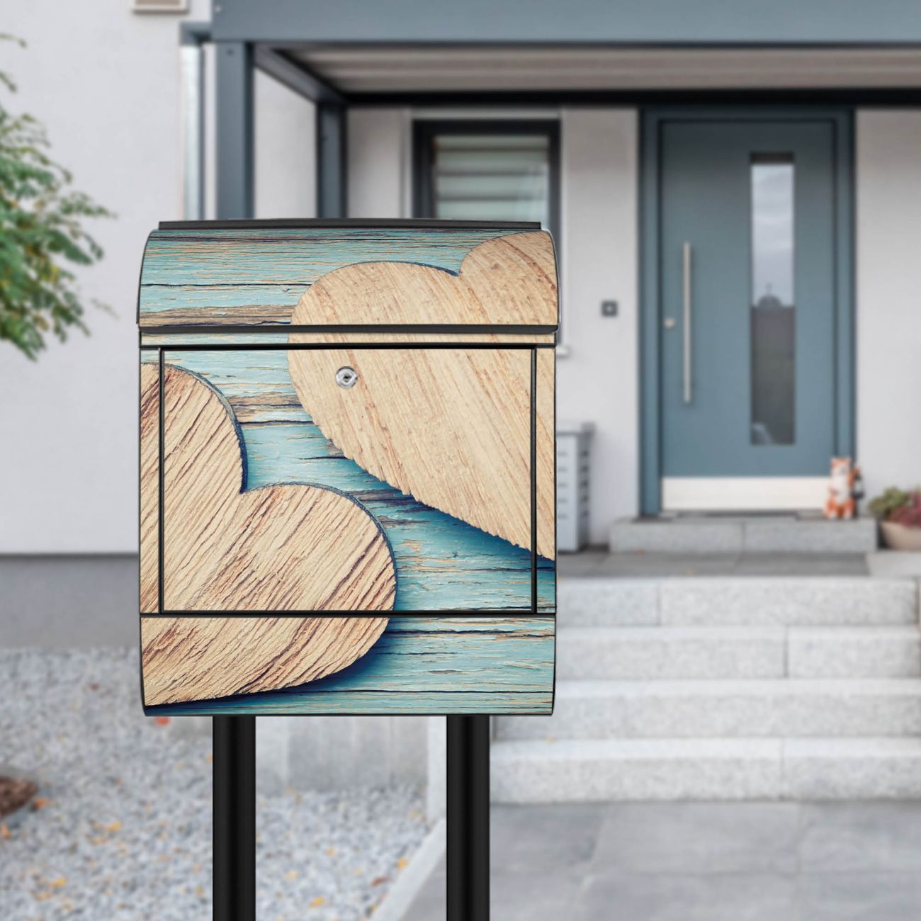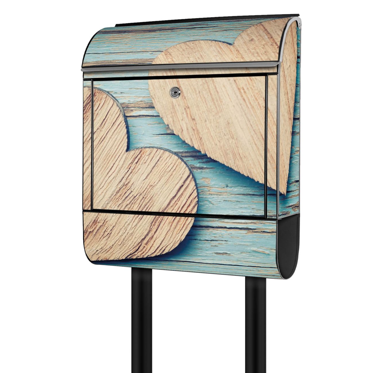 Standbriefkasten Stahl Holz Herzen