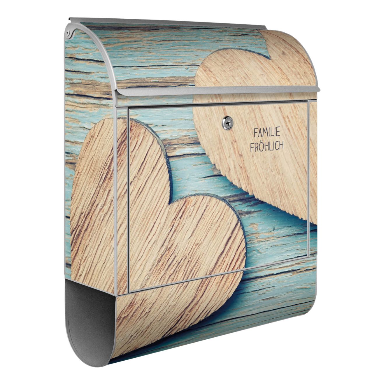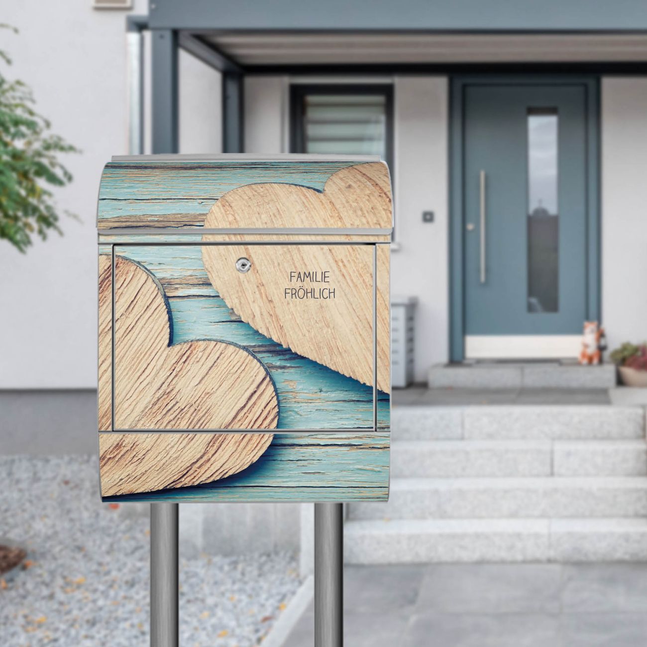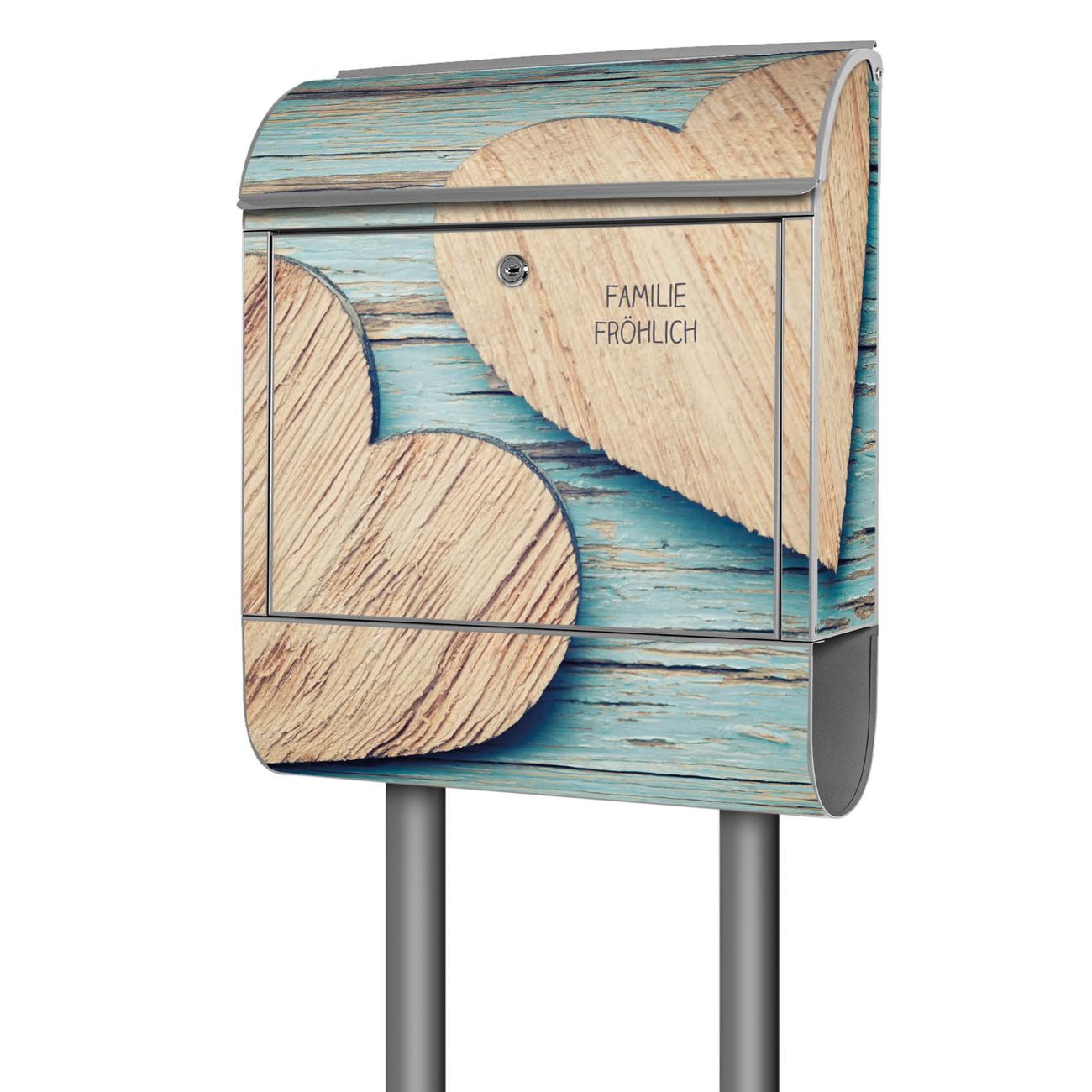 Der banjado Standbriefkasten mit Motiv Motiv Holz Herzen kombiniert großzügigen Stauraum mit modernem Design. Durch das geräumige Fach finden auch große A4-Sendungen problemlos Platz. Die integrierte Zeitungsrolle sorgt dafür, dass Tageszeitungen und Magazine separat und griffbereit untergebracht sind. Der pulverbeschichtete Standfuß ist farblich passend zum Briefkasten gestaltet und sorgt für ein stimmiges Gesamtbild. Mit dem individuellen Motiv setzen Sie einen optischen Akzent, der sowohl praktisch als auch dekorativ ist.