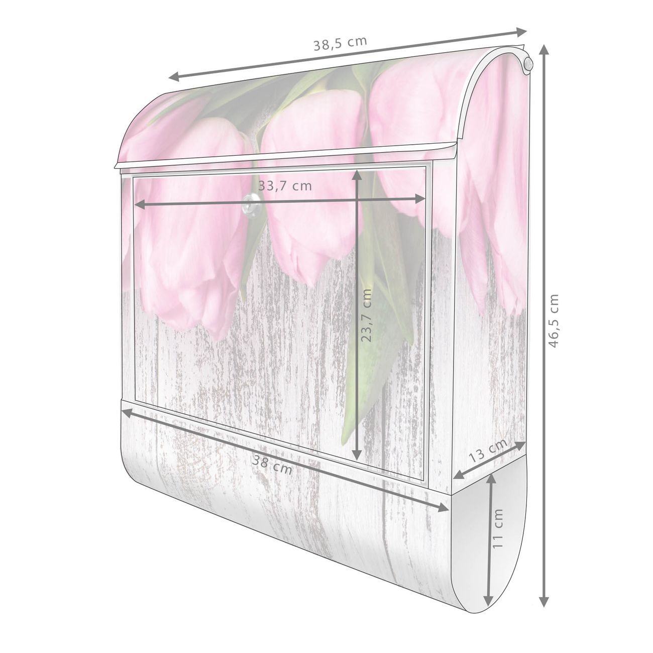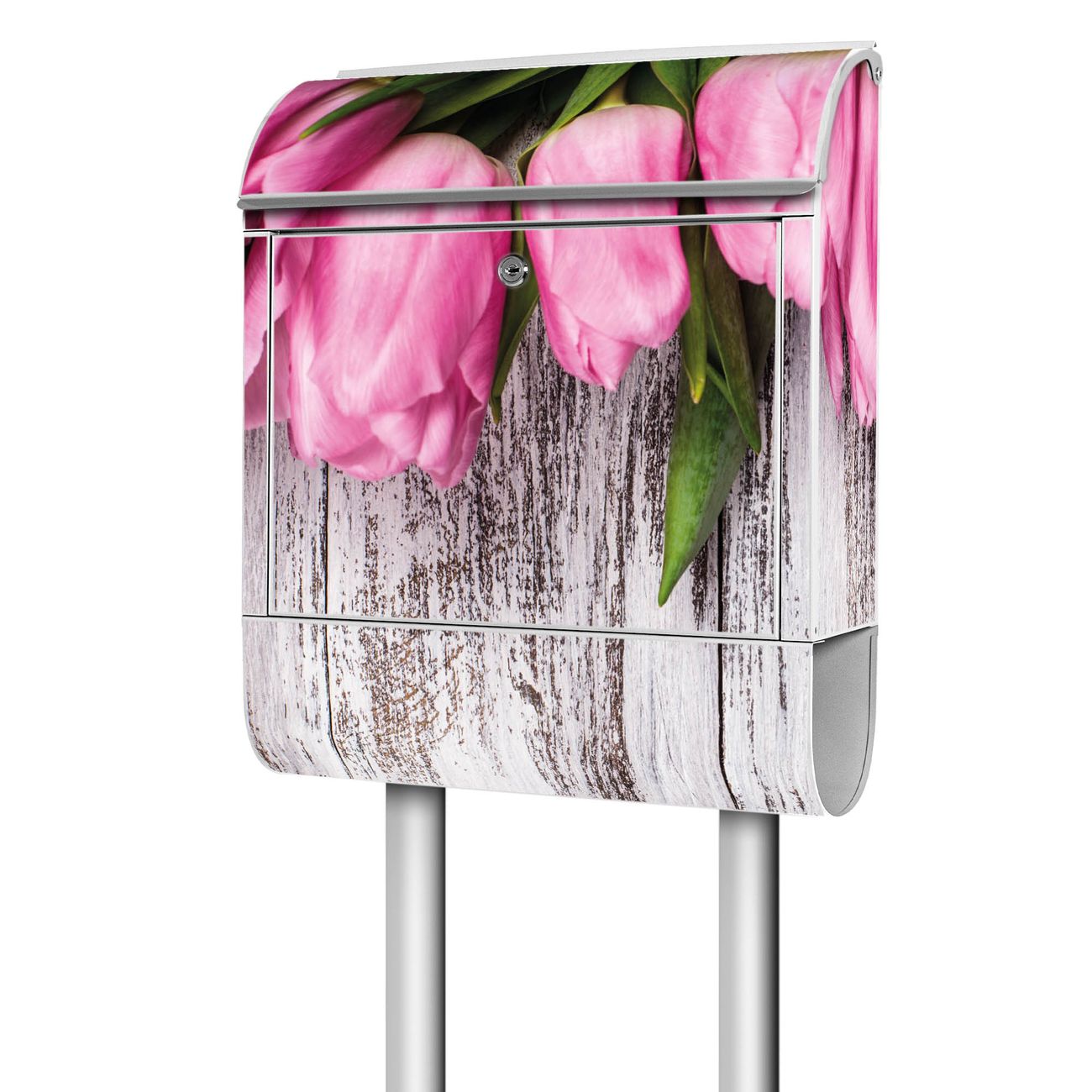 Der banjado Standbriefkasten mit Motiv Motiv Holz und Tulpen kombiniert großzügigen Stauraum mit modernem Design. Durch das geräumige Fach finden auch große A4-Sendungen problemlos Platz. Die integrierte Zeitungsrolle sorgt dafür, dass Tageszeitungen und Magazine separat und griffbereit untergebracht sind. Der pulverbeschichtete Standfuß ist farblich passend zum Briefkasten gestaltet und sorgt für ein stimmiges Gesamtbild. Mit dem individuellen Motiv setzen Sie einen optischen Akzent, der sowohl praktisch als auch dekorativ ist.