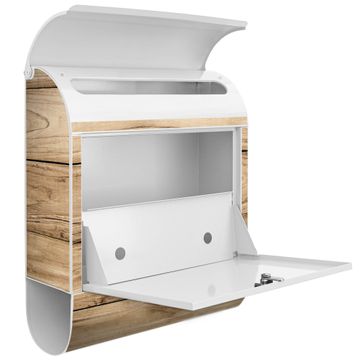 Der banjado Standbriefkasten mit Motiv Motiv Holzplanken kombiniert großzügigen Stauraum mit modernem Design. Durch das geräumige Fach finden auch große A4-Sendungen problemlos Platz. Die integrierte Zeitungsrolle sorgt dafür, dass Tageszeitungen und Magazine separat und griffbereit untergebracht sind. Der pulverbeschichtete Standfuß ist farblich passend zum Briefkasten gestaltet und sorgt für ein stimmiges Gesamtbild. Mit dem individuellen Motiv setzen Sie einen optischen Akzent, der sowohl praktisch als auch dekorativ ist.