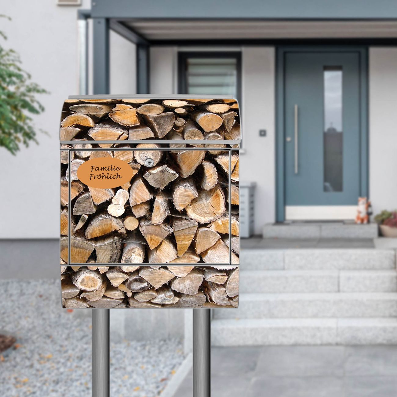 Standbriefkasten Stahl Holzstapel