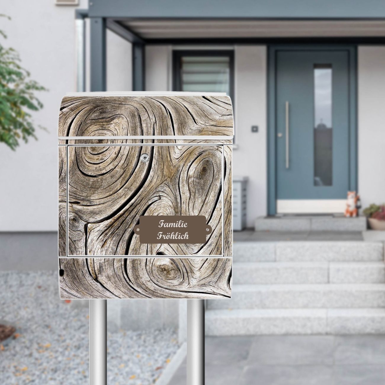 Der banjado Standbriefkasten mit Motiv Motiv Holzwirbel kombiniert großzügigen Stauraum mit modernem Design. Durch das geräumige Fach finden auch große A4-Sendungen problemlos Platz. Die integrierte Zeitungsrolle sorgt dafür, dass Tageszeitungen und Magazine separat und griffbereit untergebracht sind. Der pulverbeschichtete Standfuß ist farblich passend zum Briefkasten gestaltet und sorgt für ein stimmiges Gesamtbild. Mit dem individuellen Motiv setzen Sie einen optischen Akzent, der sowohl praktisch als auch dekorativ ist.
