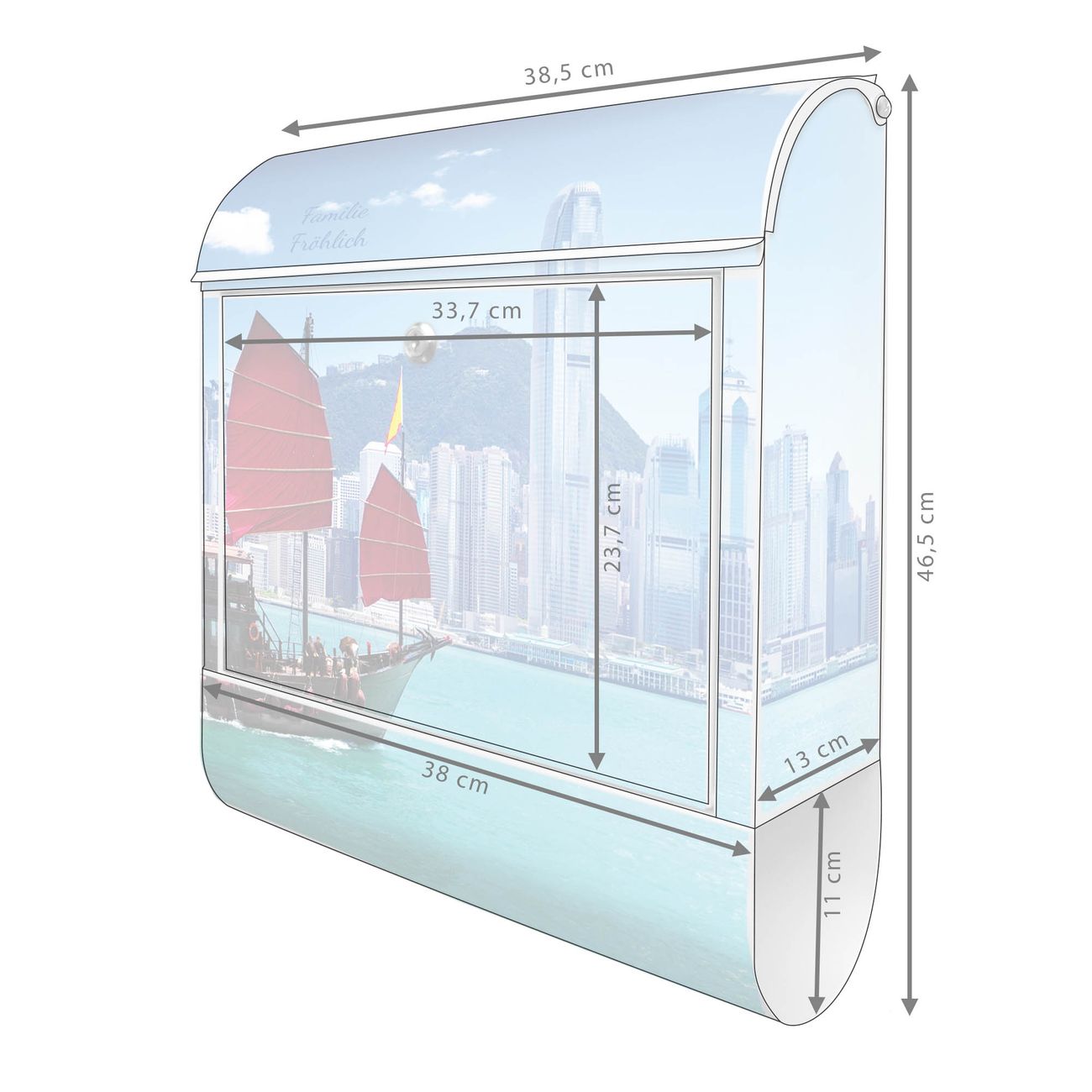 Der banjado Standbriefkasten mit Motiv Motiv Hong Kong kombiniert großzügigen Stauraum mit modernem Design. Durch das geräumige Fach finden auch große A4-Sendungen problemlos Platz. Die integrierte Zeitungsrolle sorgt dafür, dass Tageszeitungen und Magazine separat und griffbereit untergebracht sind. Der pulverbeschichtete Standfuß ist farblich passend zum Briefkasten gestaltet und sorgt für ein stimmiges Gesamtbild. Mit dem individuellen Motiv setzen Sie einen optischen Akzent, der sowohl praktisch als auch dekorativ ist.
