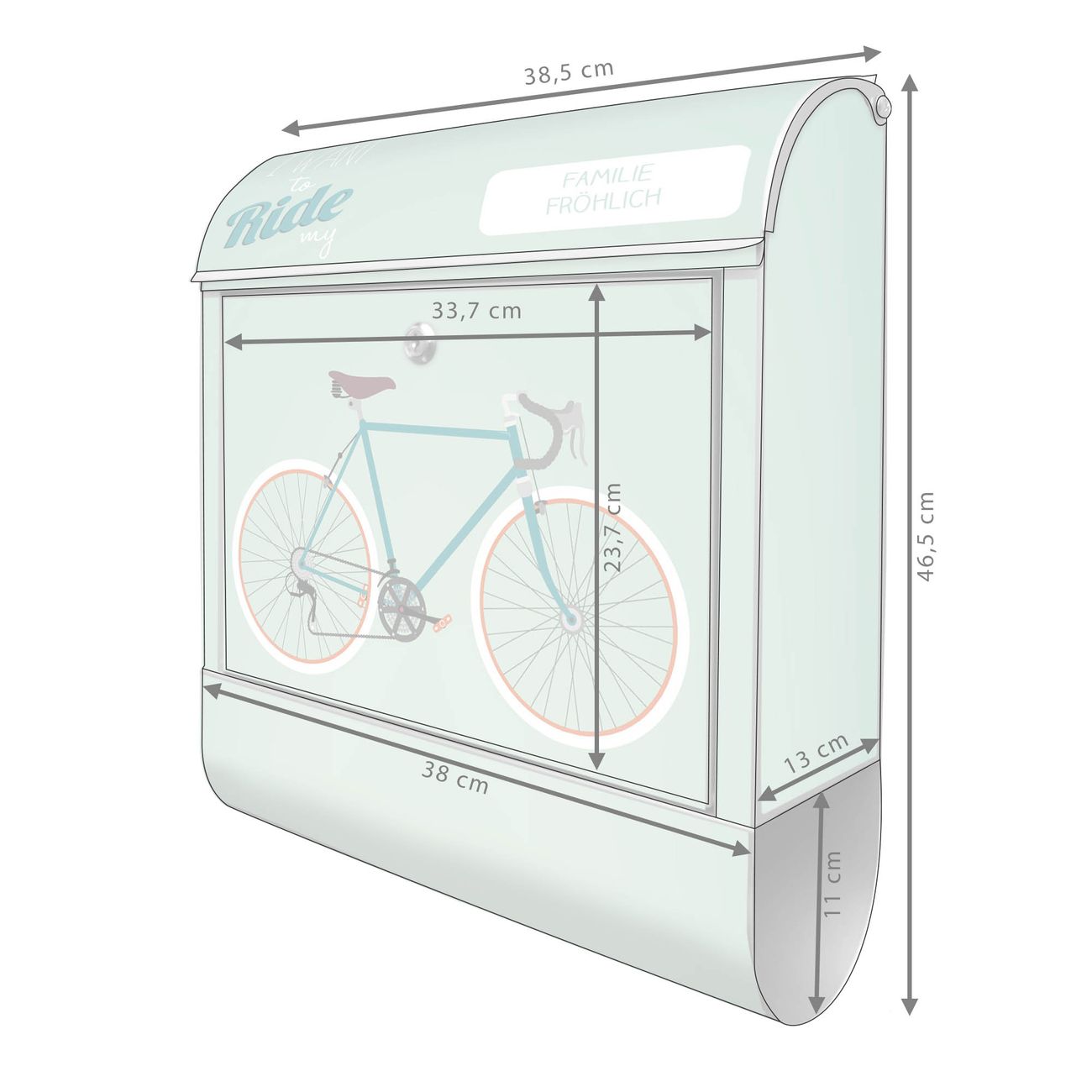 Der banjado Standbriefkasten mit Motiv Motiv I want to ride my bike kombiniert großzügigen Stauraum mit modernem Design. Durch das geräumige Fach finden auch große A4-Sendungen problemlos Platz. Die integrierte Zeitungsrolle sorgt dafür, dass Tageszeitungen und Magazine separat und griffbereit untergebracht sind. Der pulverbeschichtete Standfuß ist farblich passend zum Briefkasten gestaltet und sorgt für ein stimmiges Gesamtbild. Mit dem individuellen Motiv setzen Sie einen optischen Akzent, der sowohl praktisch als auch dekorativ ist.