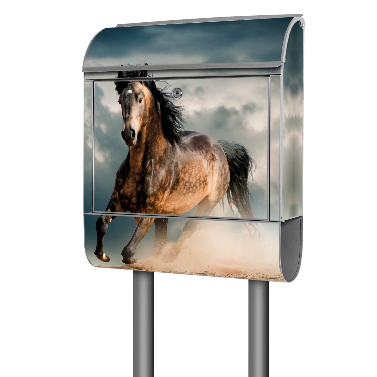 Der Standbriefkasten besteht aus pulverbeschichtetem Stahl und ist insgesamt ca. 161,5 x 47 x 16 cm groß. Das Motiv wird auf eine wetter- und UV-beständige Folie aufgebracht und mit einem robusten Schutzlaminat versiegelt. Damit bleibt die Farbbrillanz auch bei Sonne und Regen lange erhalten. Für einen sicheren Halt empfehlen wir, den Standbriefkasten mindestens 15 cm einzubetonieren. Jeder Briefkasten wird in Sachsen in einer kleinen Manufaktur von Hand veredelt - Sie erhalten ein Stück langlebige Handarbeit, das Funktionalität und Design vereint.
