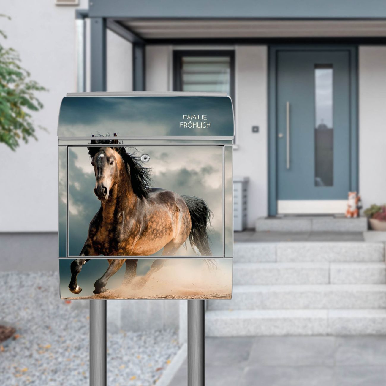 Der Vorschau-Text Familie Fröhlich wird durch Ihren persönlichen Wunschtext ersetzt. Die Schriftart und Farbe bleiben gleich wie in der Vorschau.