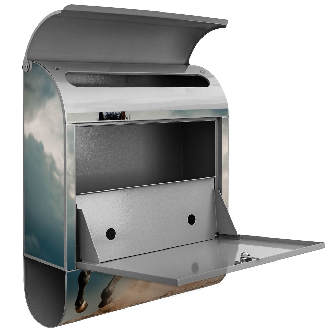 Der Standbriefkasten besteht aus pulverbeschichtetem Stahl und ist insgesamt ca. 161,5 x 47 x 16 cm groß. Das Motiv wird auf eine wetter- und UV-beständige Folie aufgebracht und mit einem robusten Schutzlaminat versiegelt. Damit bleibt die Farbbrillanz auch bei Sonne und Regen lange erhalten. Für einen sicheren Halt empfehlen wir, den Standbriefkasten mindestens 15 cm einzubetonieren. Jeder Briefkasten wird in Sachsen in einer kleinen Manufaktur von Hand veredelt - Sie erhalten ein Stück langlebige Handarbeit, das Funktionalität und Design vereint.