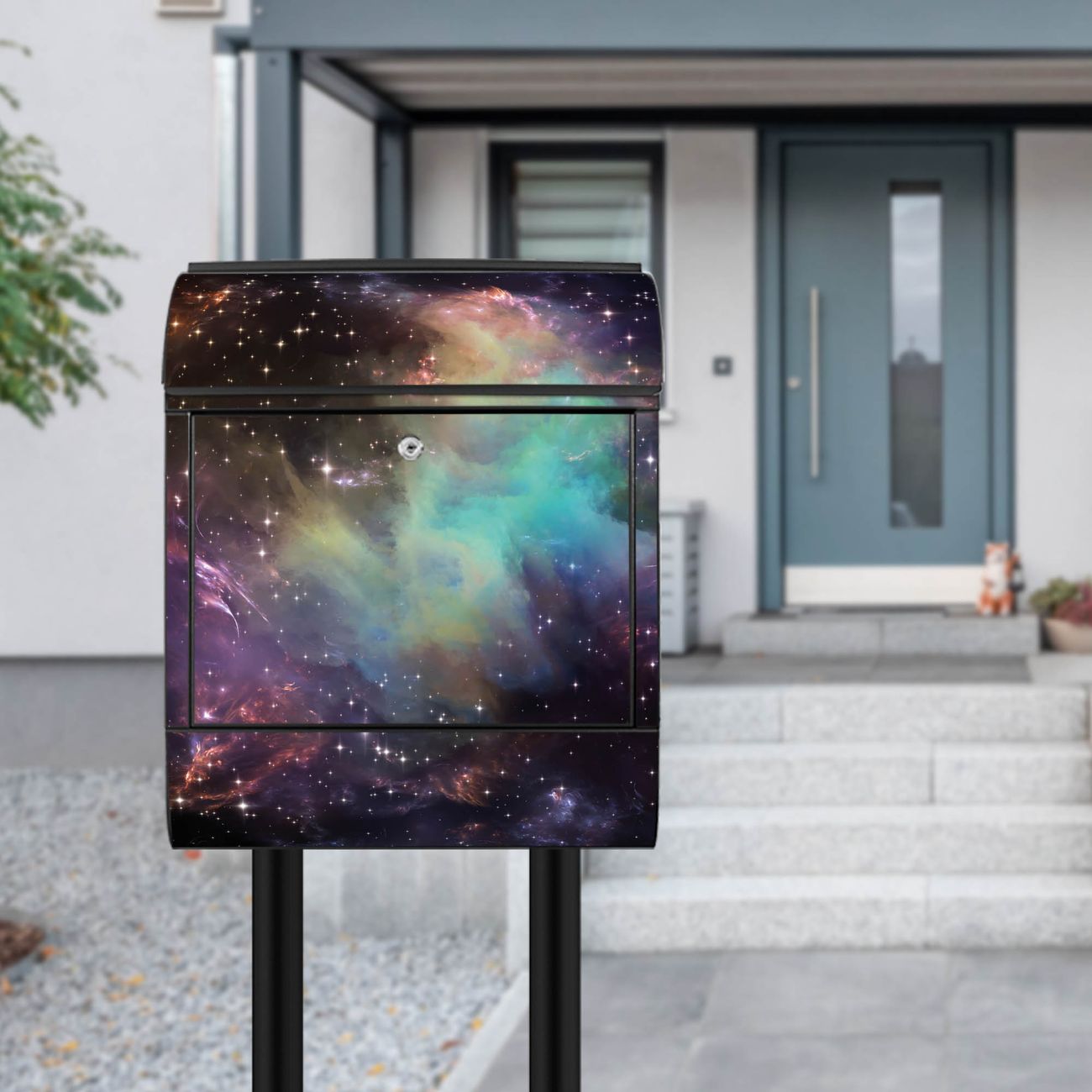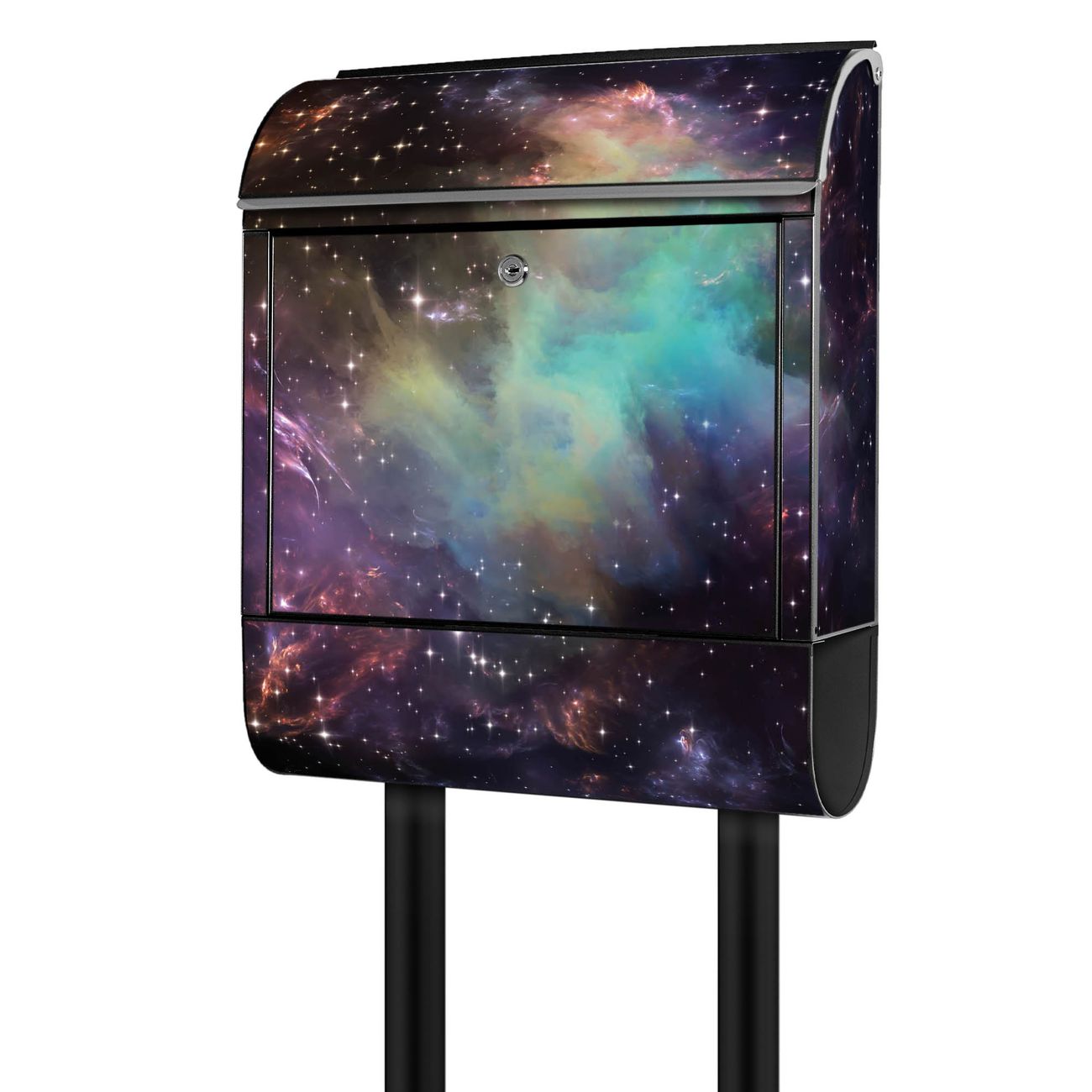 Der banjado Standbriefkasten mit Motiv Motiv Im Weltall 2 kombiniert großzügigen Stauraum mit modernem Design. Durch das geräumige Fach finden auch große A4-Sendungen problemlos Platz. Die integrierte Zeitungsrolle sorgt dafür, dass Tageszeitungen und Magazine separat und griffbereit untergebracht sind. Der pulverbeschichtete Standfuß ist farblich passend zum Briefkasten gestaltet und sorgt für ein stimmiges Gesamtbild. Mit dem individuellen Motiv setzen Sie einen optischen Akzent, der sowohl praktisch als auch dekorativ ist.