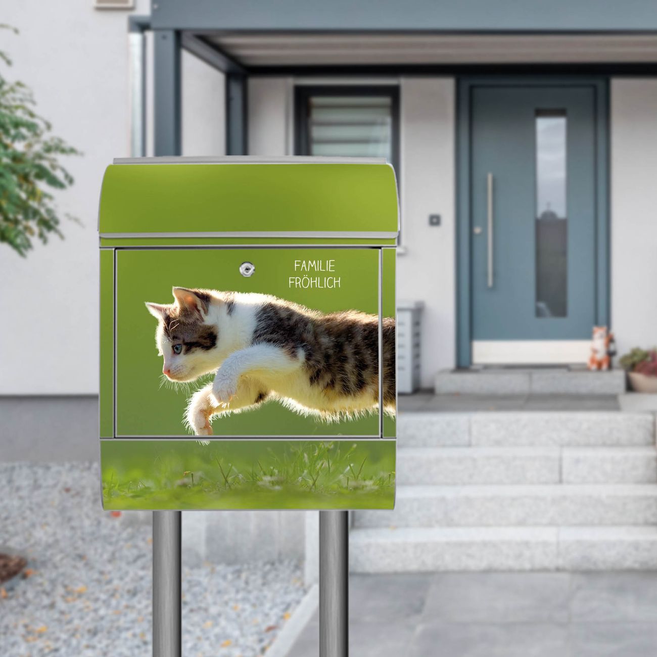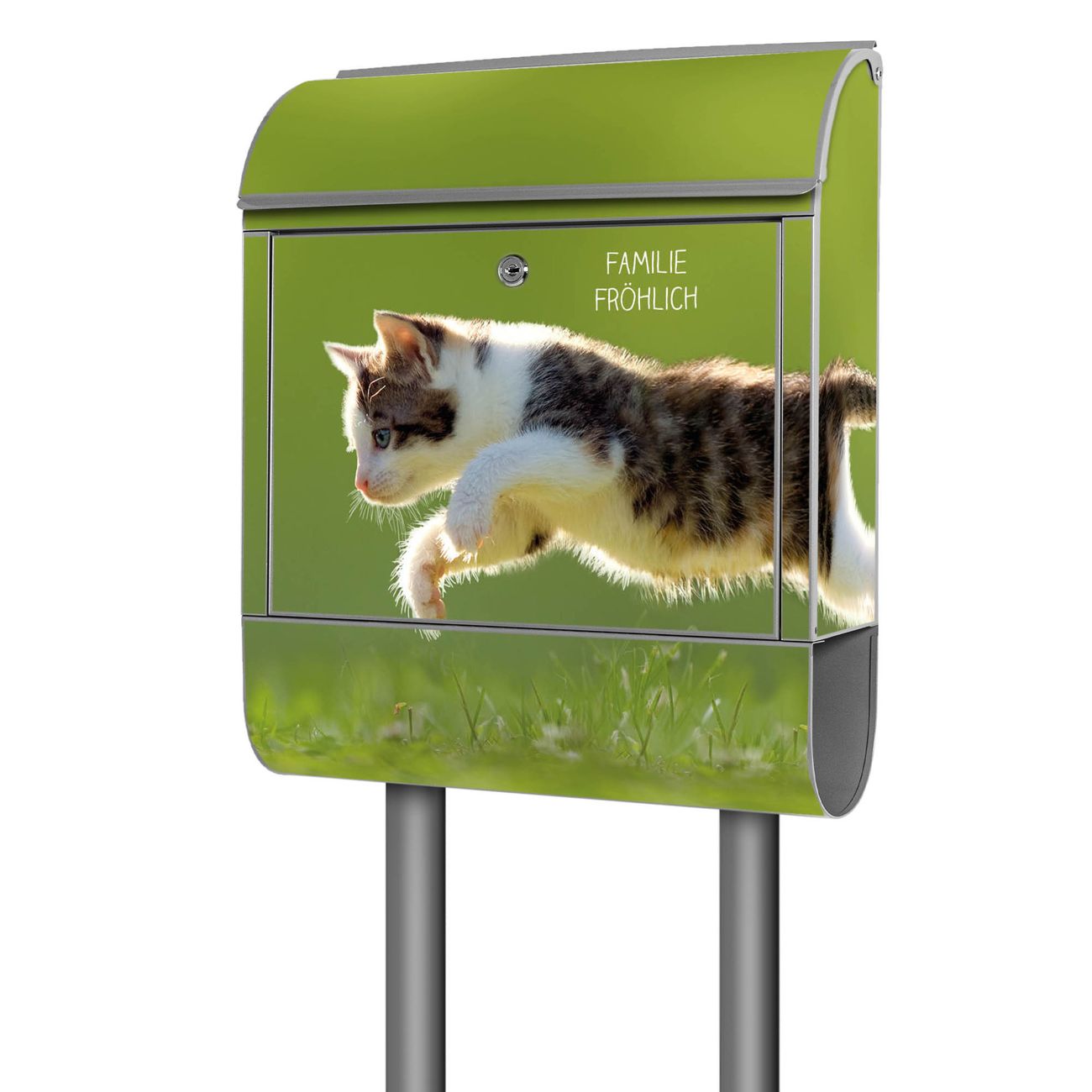 Standbriefkasten Stahl Jagende Katze