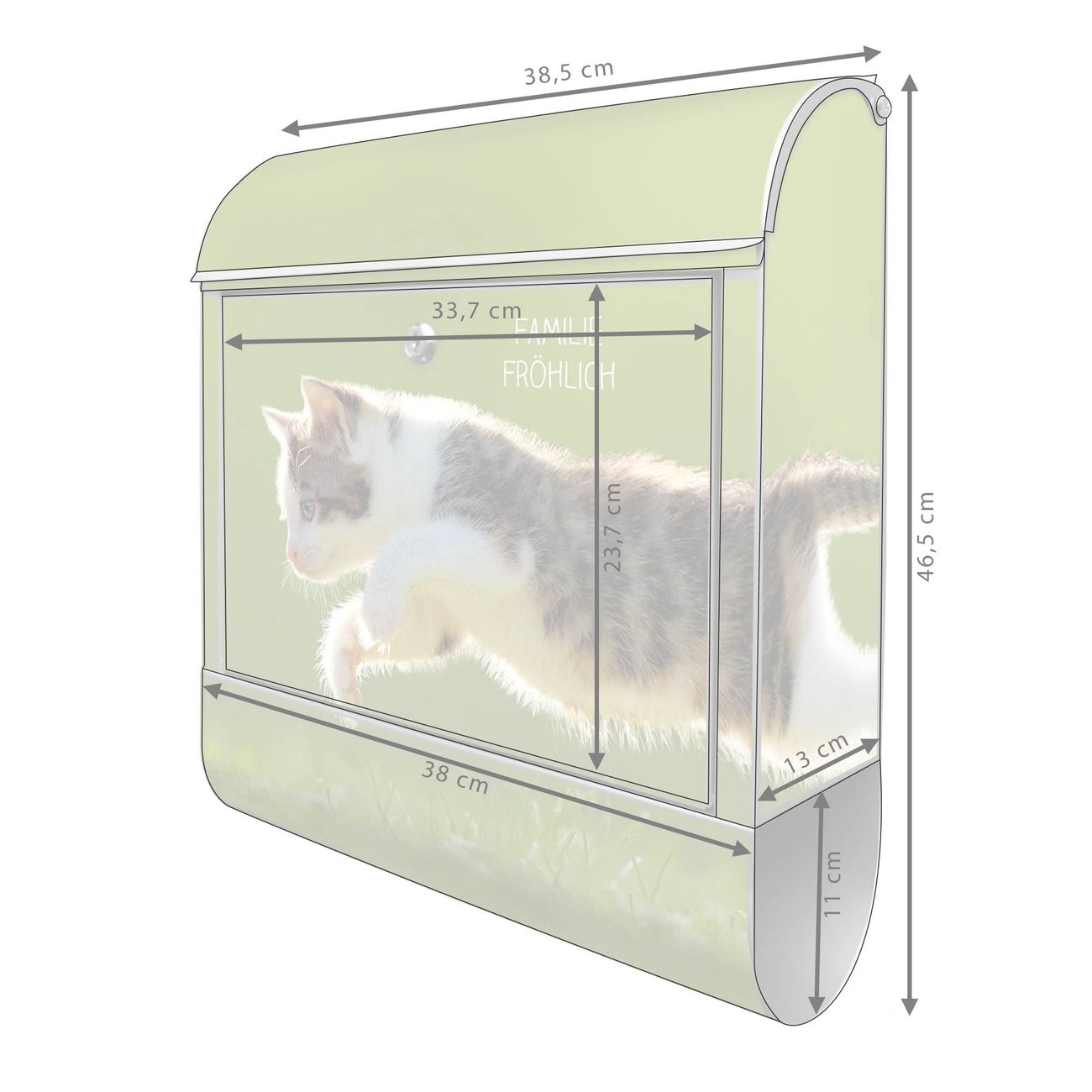 Der banjado Standbriefkasten mit Motiv Motiv Jagende Katze kombiniert großzügigen Stauraum mit modernem Design. Durch das geräumige Fach finden auch große A4-Sendungen problemlos Platz. Die integrierte Zeitungsrolle sorgt dafür, dass Tageszeitungen und Magazine separat und griffbereit untergebracht sind. Der pulverbeschichtete Standfuß ist farblich passend zum Briefkasten gestaltet und sorgt für ein stimmiges Gesamtbild. Mit dem individuellen Motiv setzen Sie einen optischen Akzent, der sowohl praktisch als auch dekorativ ist.