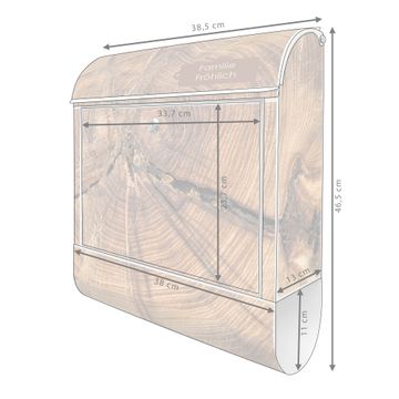Der banjado Standbriefkasten mit Motiv Motiv Jahresringe kombiniert großzügigen Stauraum mit modernem Design. Durch das geräumige Fach finden auch große A4-Sendungen problemlos Platz. Die integrierte Zeitungsrolle sorgt dafür, dass Tageszeitungen und Magazine separat und griffbereit untergebracht sind. Der pulverbeschichtete Standfuß ist farblich passend zum Briefkasten gestaltet und sorgt für ein stimmiges Gesamtbild. Mit dem individuellen Motiv setzen Sie einen optischen Akzent, der sowohl praktisch als auch dekorativ ist.