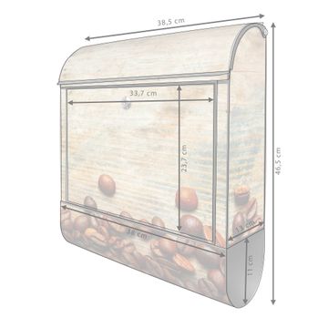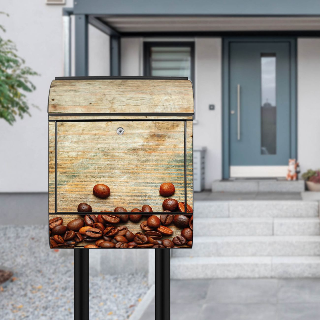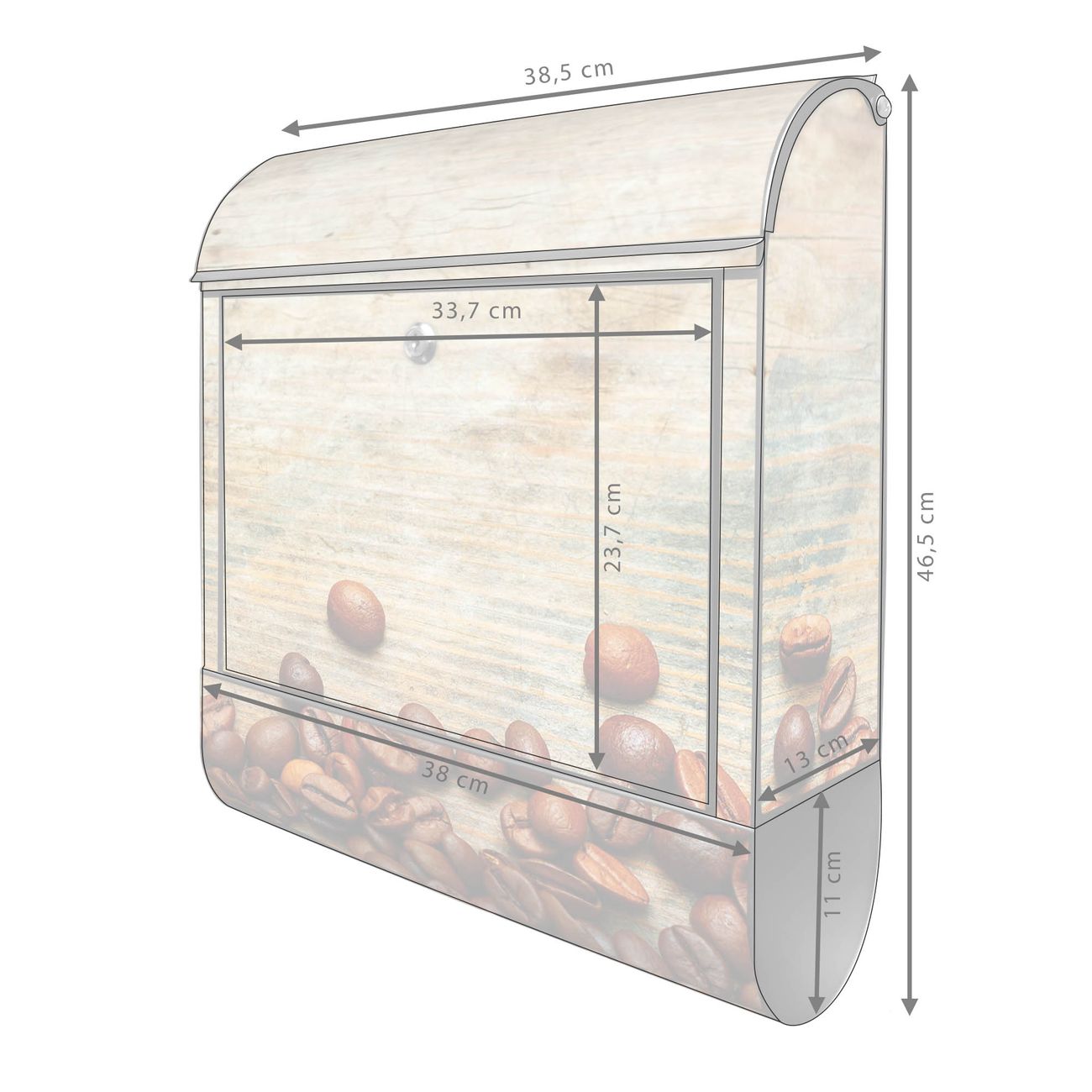 Der banjado Standbriefkasten mit Motiv Motiv Kaffeebohnen kombiniert großzügigen Stauraum mit modernem Design. Durch das geräumige Fach finden auch große A4-Sendungen problemlos Platz. Die integrierte Zeitungsrolle sorgt dafür, dass Tageszeitungen und Magazine separat und griffbereit untergebracht sind. Der pulverbeschichtete Standfuß ist farblich passend zum Briefkasten gestaltet und sorgt für ein stimmiges Gesamtbild. Mit dem individuellen Motiv setzen Sie einen optischen Akzent, der sowohl praktisch als auch dekorativ ist.