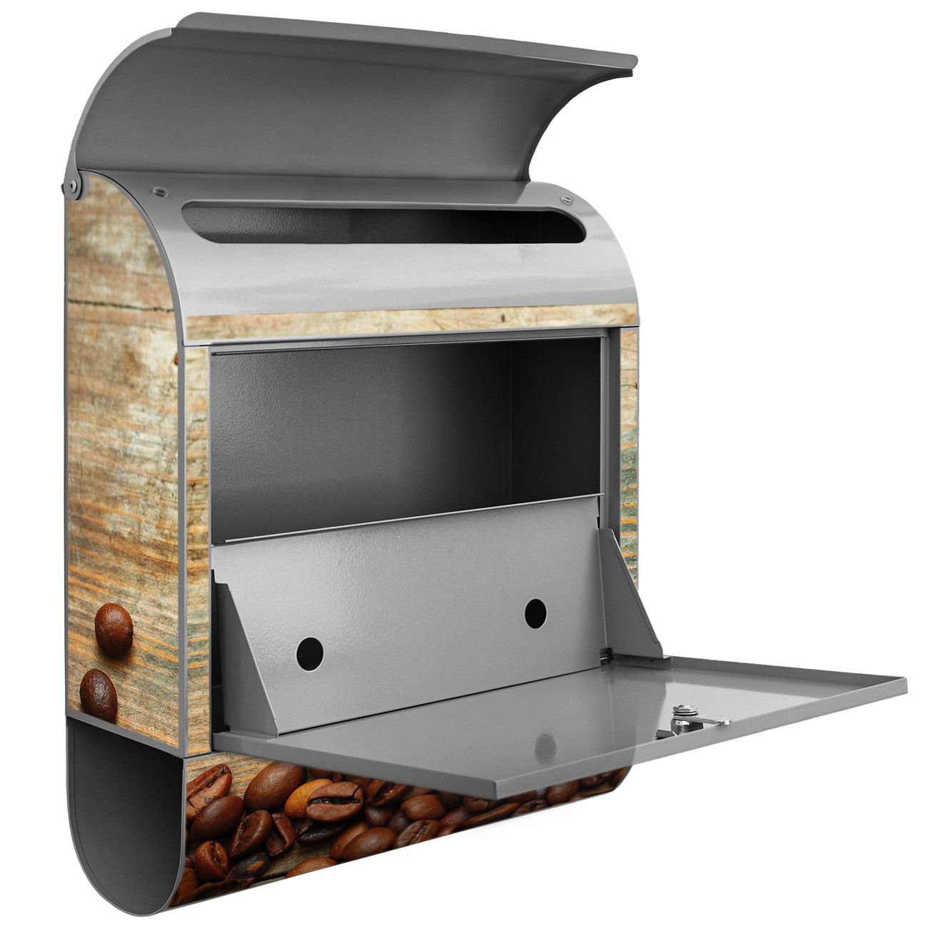Der banjado Standbriefkasten mit Motiv Motiv Kaffeebohnen kombiniert großzügigen Stauraum mit modernem Design. Durch das geräumige Fach finden auch große A4-Sendungen problemlos Platz. Die integrierte Zeitungsrolle sorgt dafür, dass Tageszeitungen und Magazine separat und griffbereit untergebracht sind. Der pulverbeschichtete Standfuß ist farblich passend zum Briefkasten gestaltet und sorgt für ein stimmiges Gesamtbild. Mit dem individuellen Motiv setzen Sie einen optischen Akzent, der sowohl praktisch als auch dekorativ ist.