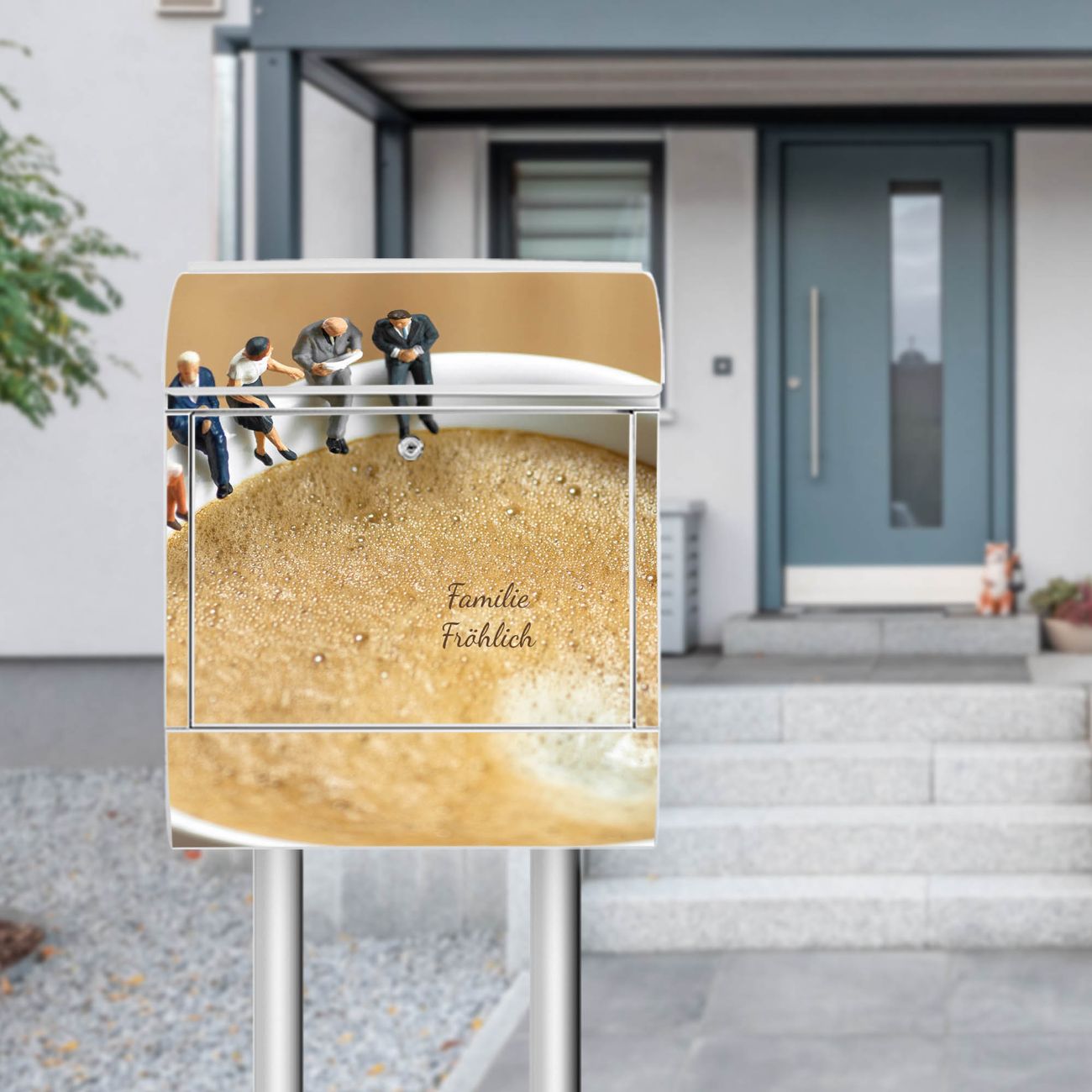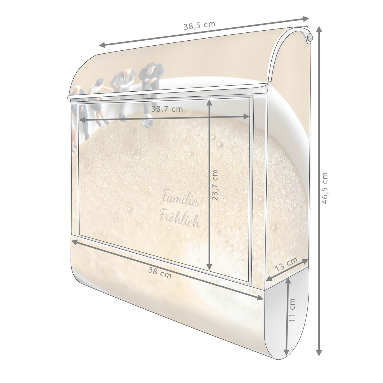 Der banjado Standbriefkasten mit Motiv Motiv Kaffeepause kombiniert großzügigen Stauraum mit modernem Design. Durch das geräumige Fach finden auch große A4-Sendungen problemlos Platz. Die integrierte Zeitungsrolle sorgt dafür, dass Tageszeitungen und Magazine separat und griffbereit untergebracht sind. Der pulverbeschichtete Standfuß ist farblich passend zum Briefkasten gestaltet und sorgt für ein stimmiges Gesamtbild. Mit dem individuellen Motiv setzen Sie einen optischen Akzent, der sowohl praktisch als auch dekorativ ist.