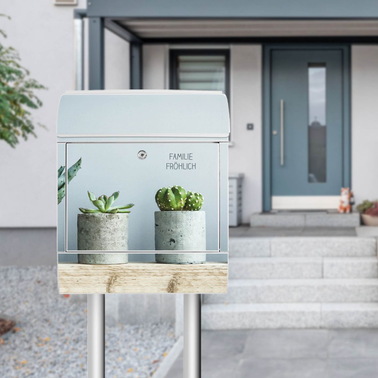 Der banjado Standbriefkasten mit Motiv Motiv Kakteen in Beton kombiniert großzügigen Stauraum mit modernem Design. Durch das geräumige Fach finden auch große A4-Sendungen problemlos Platz. Die integrierte Zeitungsrolle sorgt dafür, dass Tageszeitungen und Magazine separat und griffbereit untergebracht sind. Der pulverbeschichtete Standfuß ist farblich passend zum Briefkasten gestaltet und sorgt für ein stimmiges Gesamtbild. Mit dem individuellen Motiv setzen Sie einen optischen Akzent, der sowohl praktisch als auch dekorativ ist.