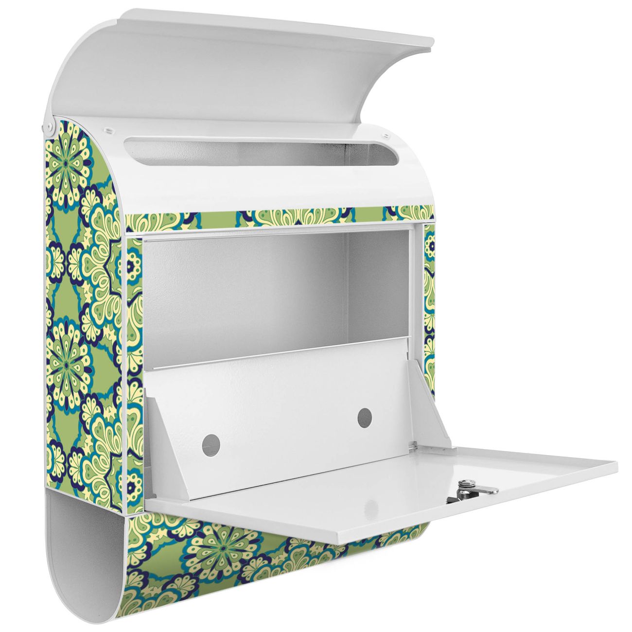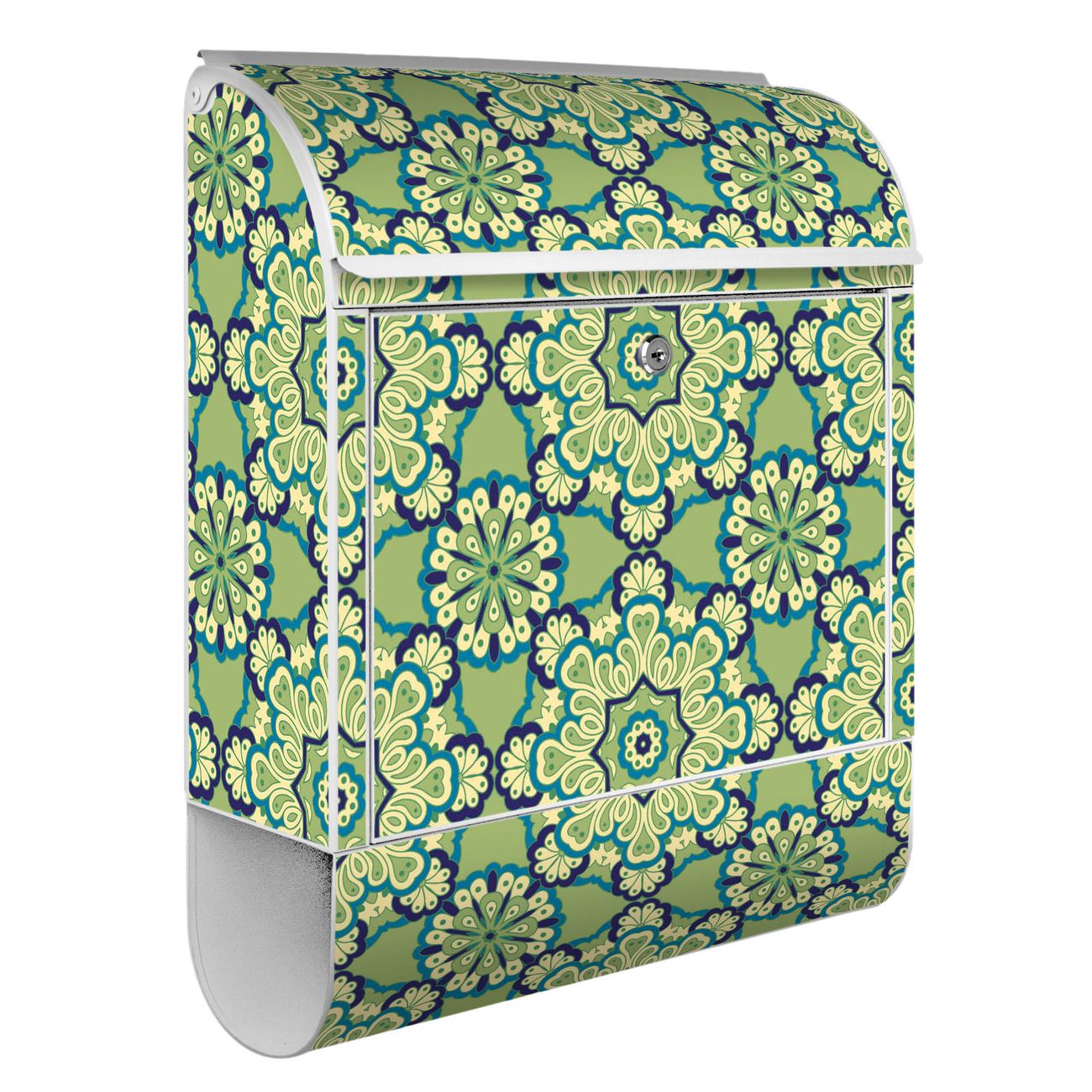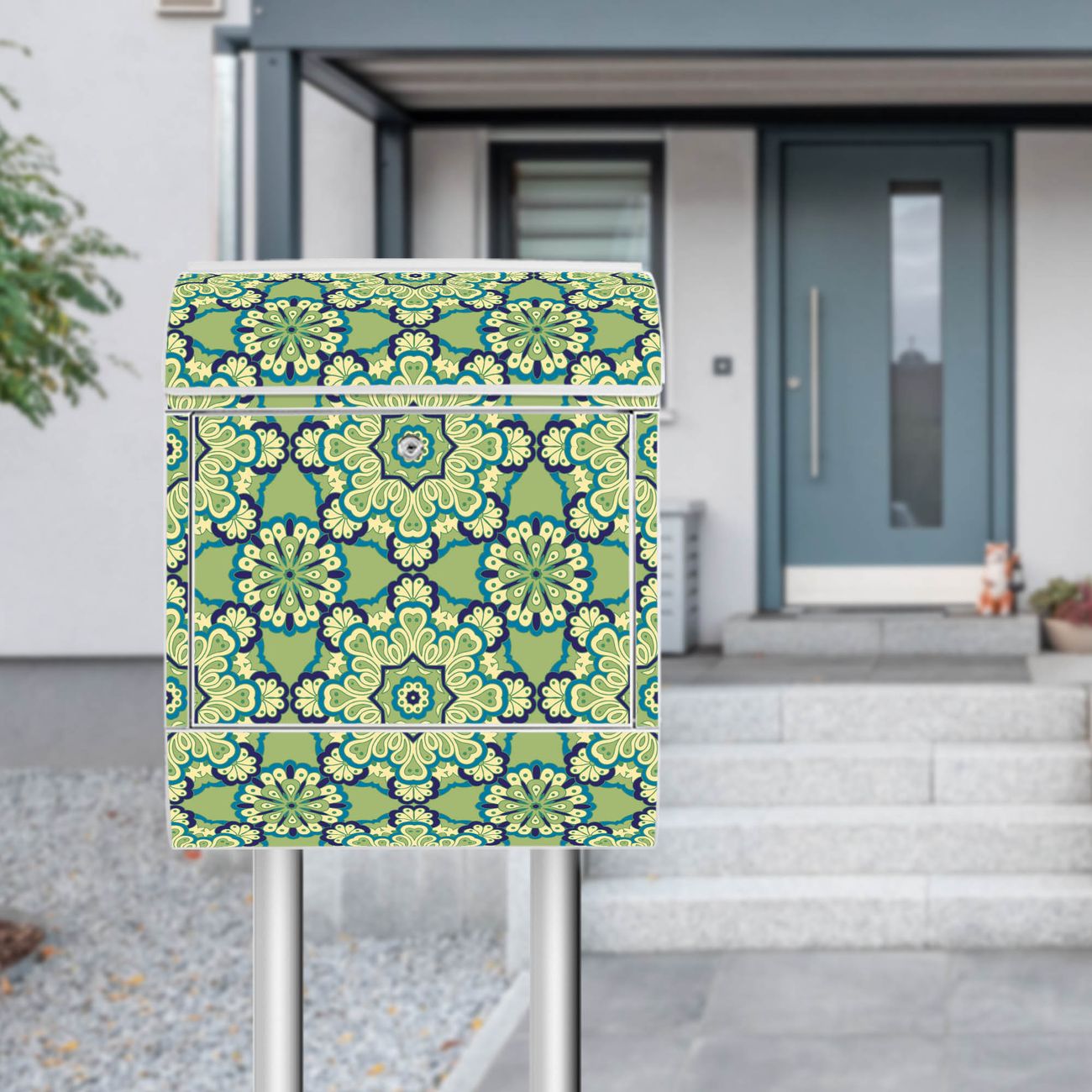 Der banjado Standbriefkasten mit Motiv Motiv Kaleidoscop Grün kombiniert großzügigen Stauraum mit modernem Design. Durch das geräumige Fach finden auch große A4-Sendungen problemlos Platz. Die integrierte Zeitungsrolle sorgt dafür, dass Tageszeitungen und Magazine separat und griffbereit untergebracht sind. Der pulverbeschichtete Standfuß ist farblich passend zum Briefkasten gestaltet und sorgt für ein stimmiges Gesamtbild. Mit dem individuellen Motiv setzen Sie einen optischen Akzent, der sowohl praktisch als auch dekorativ ist.