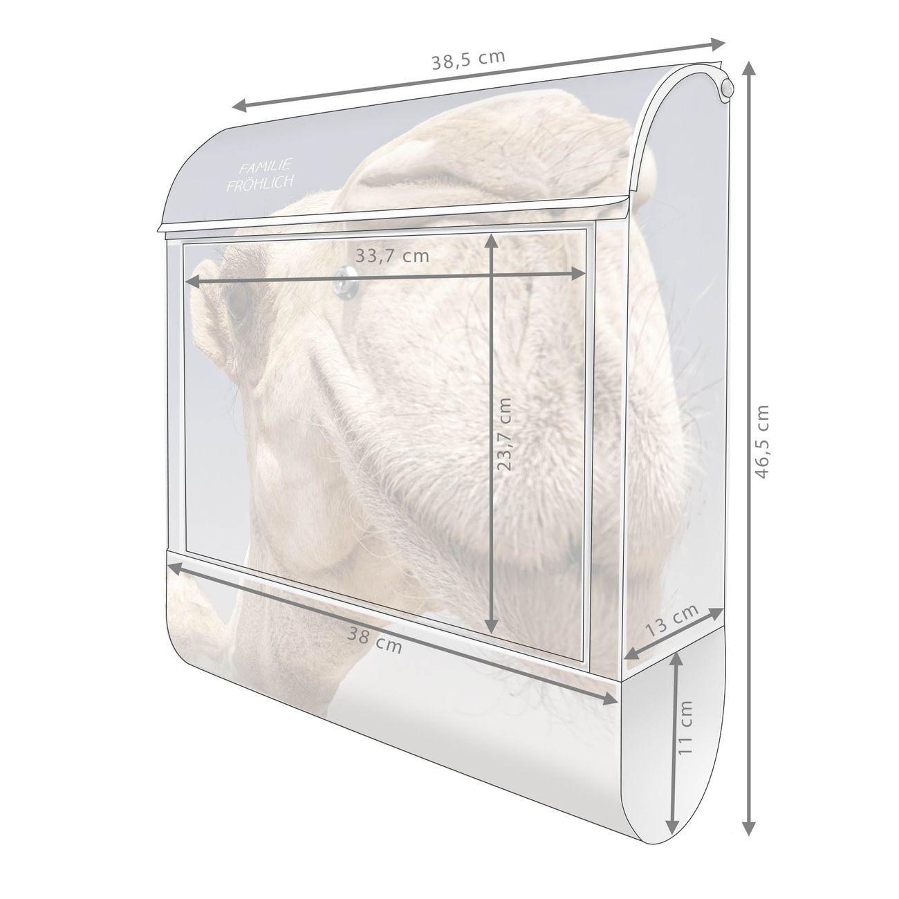 Der banjado Standbriefkasten mit Motiv Motiv Kamele kombiniert großzügigen Stauraum mit modernem Design. Durch das geräumige Fach finden auch große A4-Sendungen problemlos Platz. Die integrierte Zeitungsrolle sorgt dafür, dass Tageszeitungen und Magazine separat und griffbereit untergebracht sind. Der pulverbeschichtete Standfuß ist farblich passend zum Briefkasten gestaltet und sorgt für ein stimmiges Gesamtbild. Mit dem individuellen Motiv setzen Sie einen optischen Akzent, der sowohl praktisch als auch dekorativ ist.