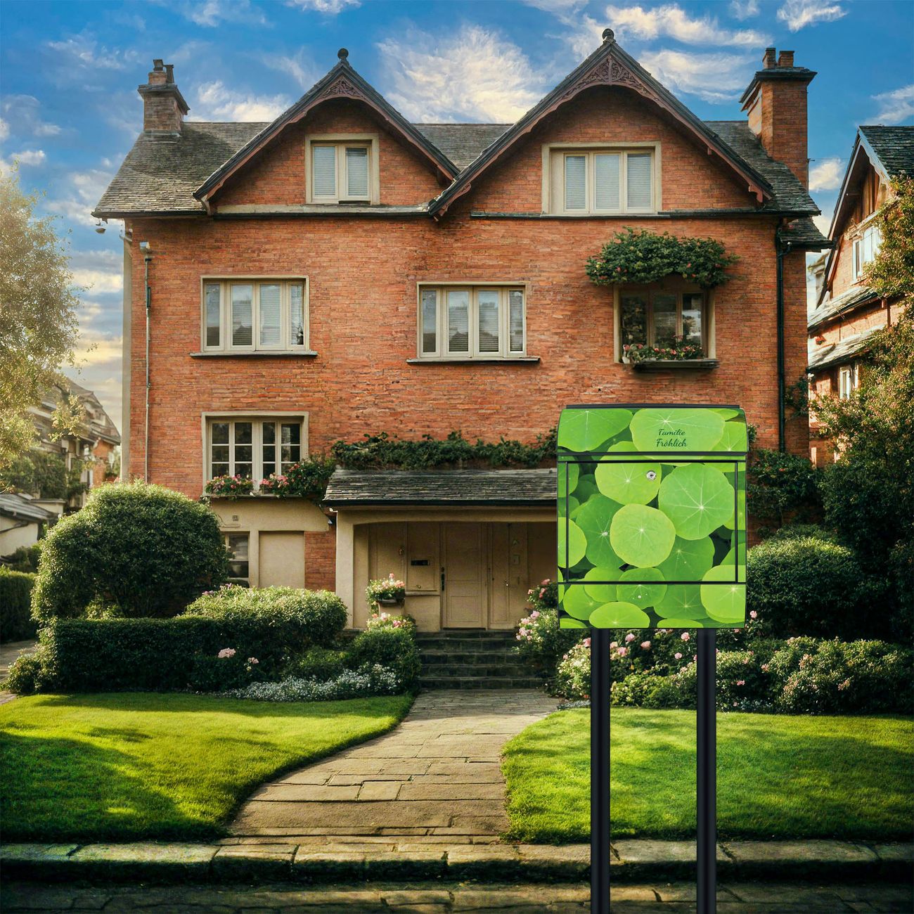 Der Standbriefkasten besteht aus pulverbeschichtetem Stahl und ist insgesamt ca. 161,5 x 47 x 16 cm groß. Das Motiv wird auf eine wetter- und UV-beständige Folie aufgebracht und mit einem robusten Schutzlaminat versiegelt. Damit bleibt die Farbbrillanz auch bei Sonne und Regen lange erhalten. Für einen sicheren Halt empfehlen wir, den Standbriefkasten mindestens 15 cm einzubetonieren. Jeder Briefkasten wird in Sachsen in einer kleinen Manufaktur von Hand veredelt - Sie erhalten ein Stück langlebige Handarbeit, das Funktionalität und Design vereint.