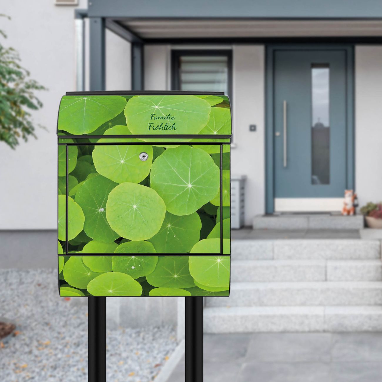 Der Vorschau-Text Familie Fröhlich wird durch Ihren persönlichen Wunschtext ersetzt. Die Schriftart und Farbe bleiben gleich wie in der Vorschau.