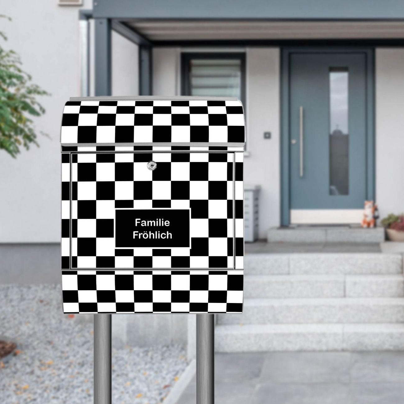 Standbriefkasten Stahl Karo Schwarz