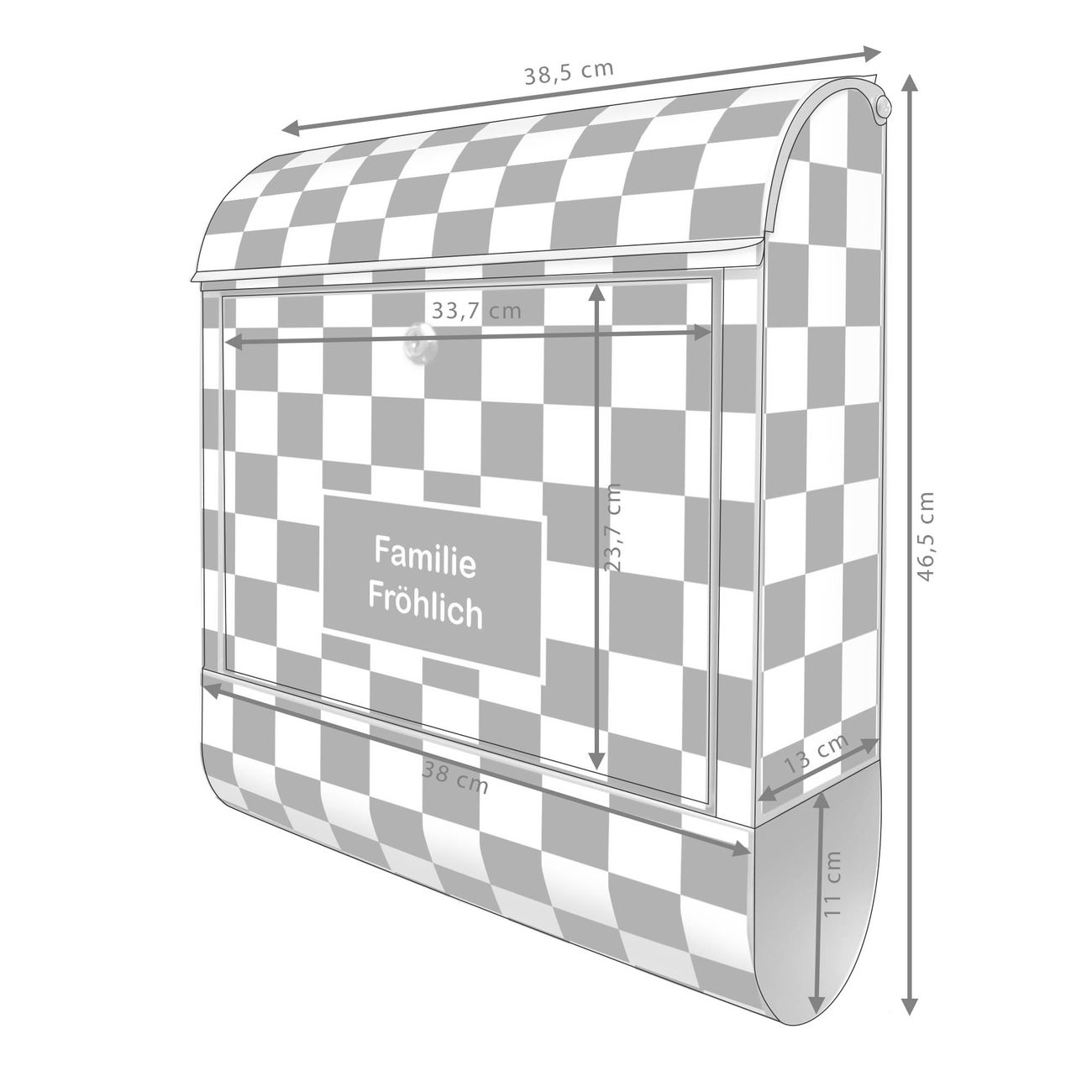 Der banjado Standbriefkasten mit Motiv Motiv Karo Schwarz kombiniert großzügigen Stauraum mit modernem Design. Durch das geräumige Fach finden auch große A4-Sendungen problemlos Platz. Die integrierte Zeitungsrolle sorgt dafür, dass Tageszeitungen und Magazine separat und griffbereit untergebracht sind. Der pulverbeschichtete Standfuß ist farblich passend zum Briefkasten gestaltet und sorgt für ein stimmiges Gesamtbild. Mit dem individuellen Motiv setzen Sie einen optischen Akzent, der sowohl praktisch als auch dekorativ ist.