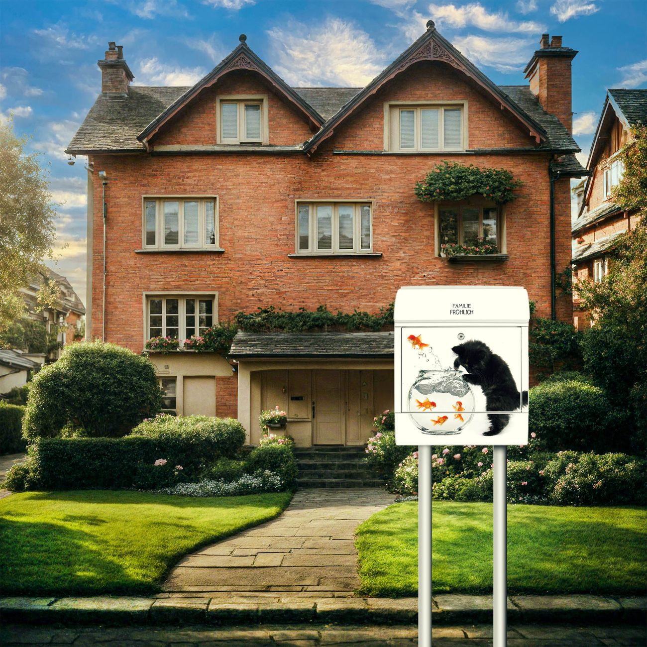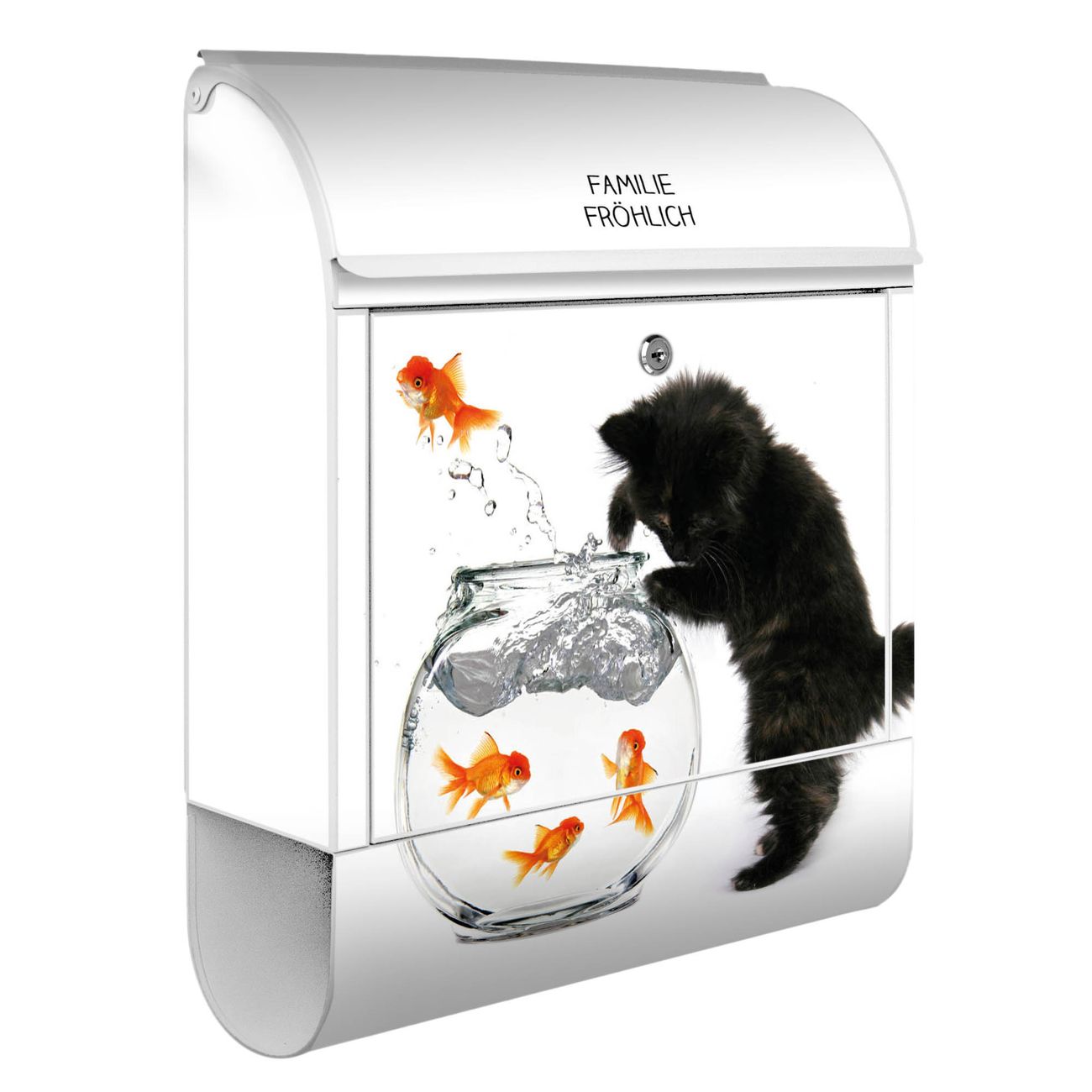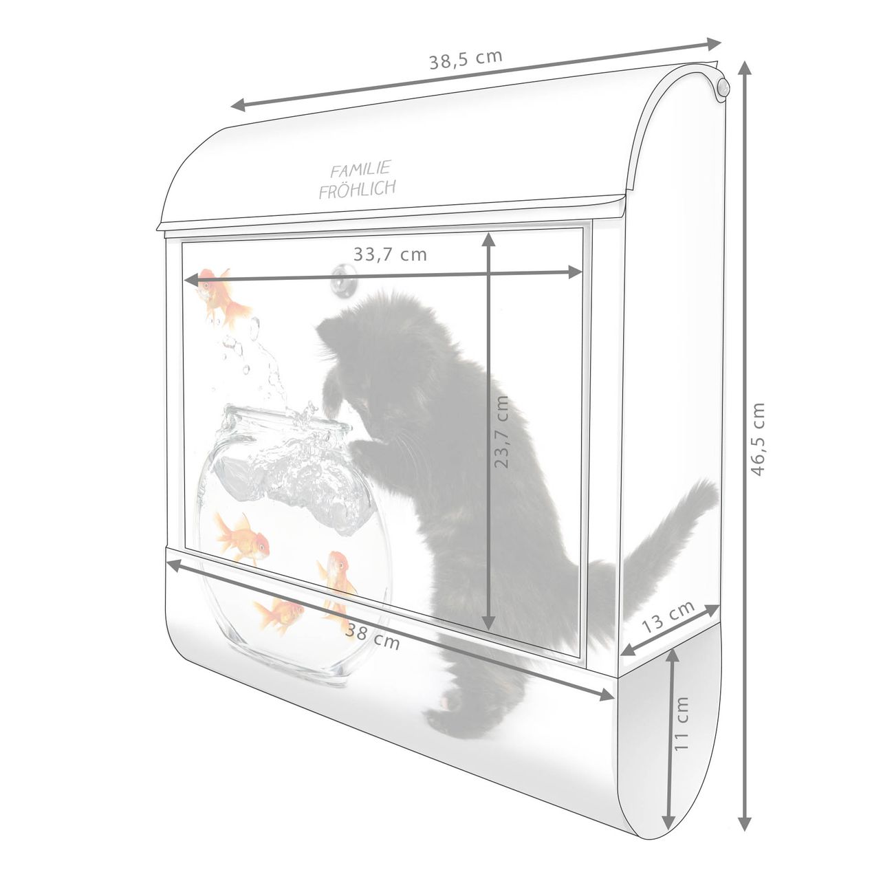 Der banjado Standbriefkasten mit Motiv Motiv Katze Und Fisch kombiniert großzügigen Stauraum mit modernem Design. Durch das geräumige Fach finden auch große A4-Sendungen problemlos Platz. Die integrierte Zeitungsrolle sorgt dafür, dass Tageszeitungen und Magazine separat und griffbereit untergebracht sind. Der pulverbeschichtete Standfuß ist farblich passend zum Briefkasten gestaltet und sorgt für ein stimmiges Gesamtbild. Mit dem individuellen Motiv setzen Sie einen optischen Akzent, der sowohl praktisch als auch dekorativ ist.