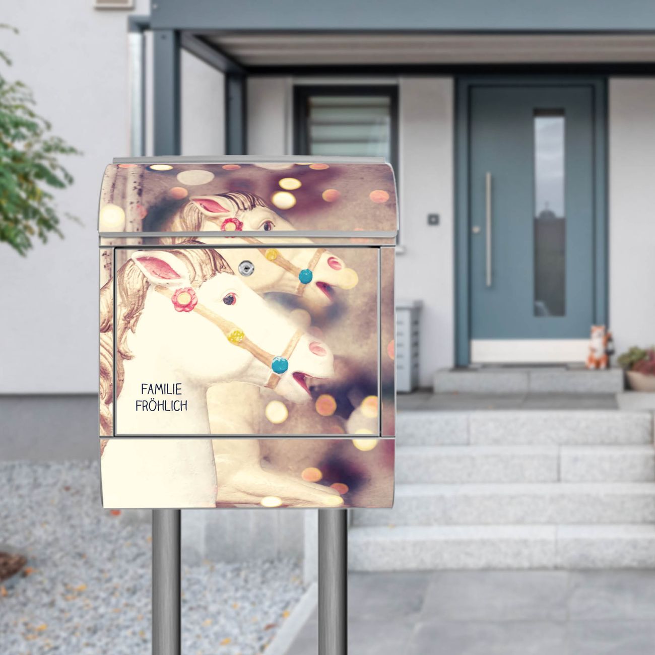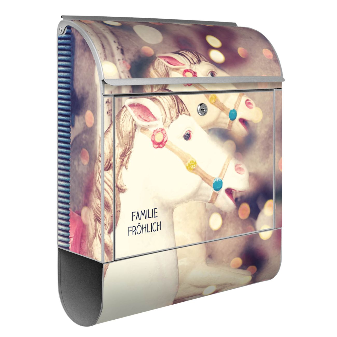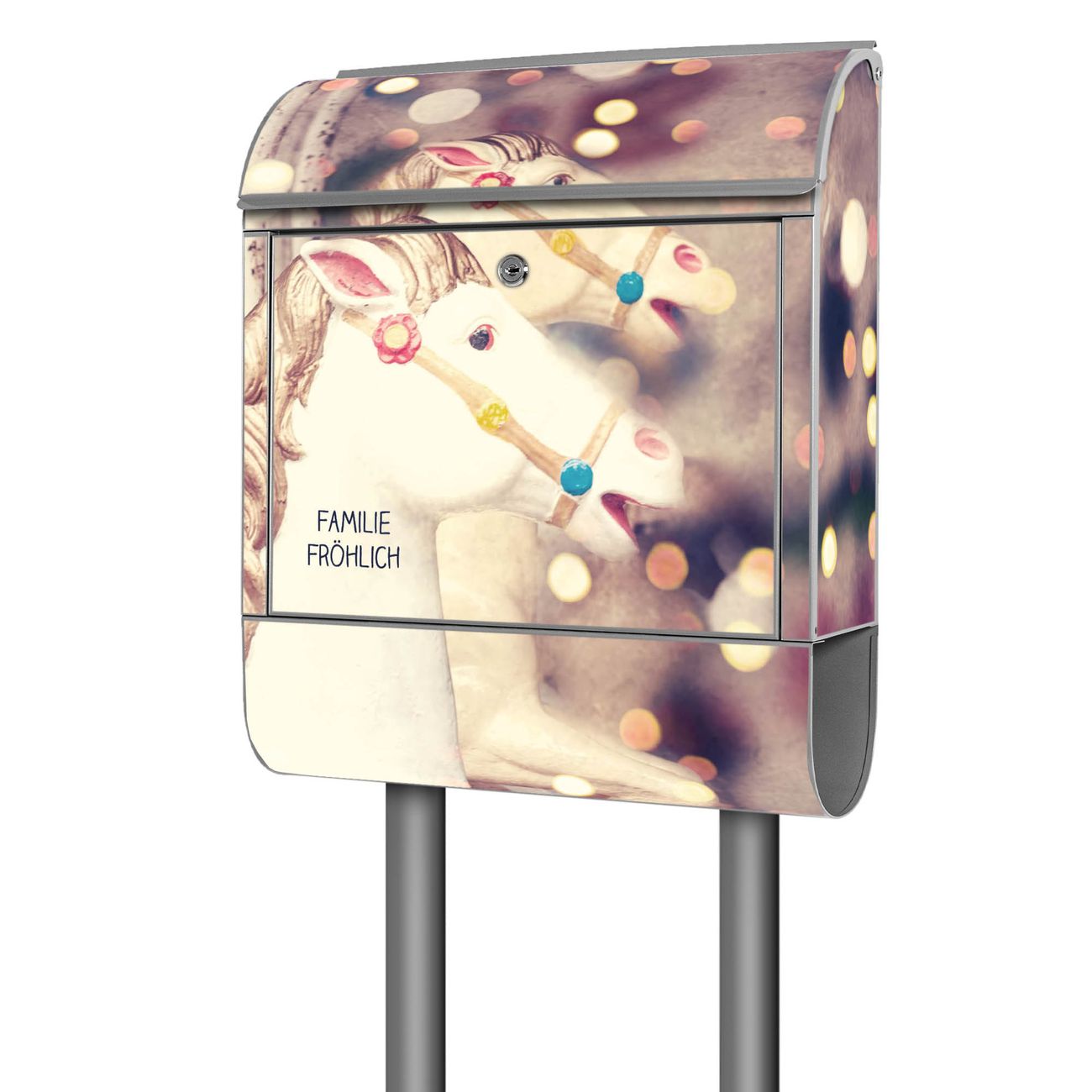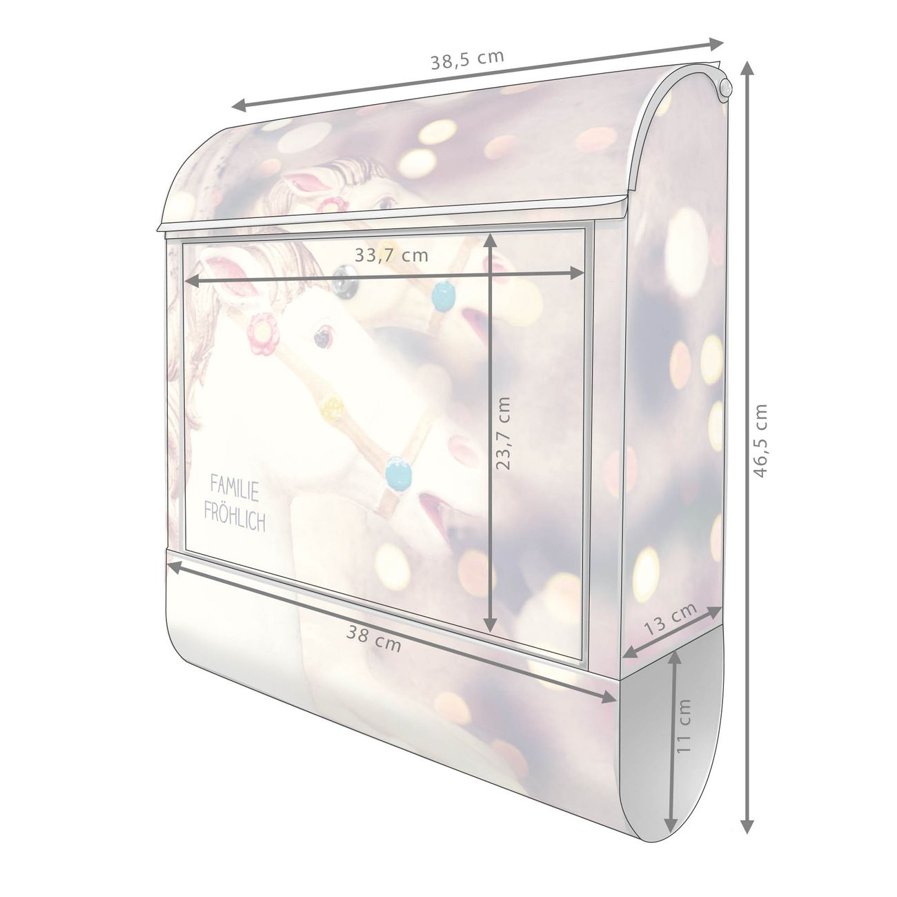 Der banjado Standbriefkasten mit Motiv Motiv Kinderkarussell kombiniert großzügigen Stauraum mit modernem Design. Durch das geräumige Fach finden auch große A4-Sendungen problemlos Platz. Die integrierte Zeitungsrolle sorgt dafür, dass Tageszeitungen und Magazine separat und griffbereit untergebracht sind. Der pulverbeschichtete Standfuß ist farblich passend zum Briefkasten gestaltet und sorgt für ein stimmiges Gesamtbild. Mit dem individuellen Motiv setzen Sie einen optischen Akzent, der sowohl praktisch als auch dekorativ ist.