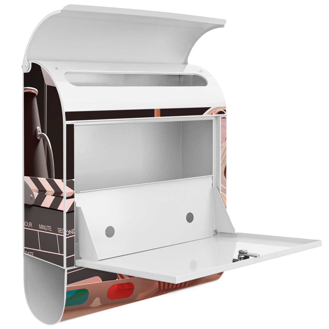 Der banjado Standbriefkasten mit Motiv Motiv Kino kombiniert großzügigen Stauraum mit modernem Design. Durch das geräumige Fach finden auch große A4-Sendungen problemlos Platz. Die integrierte Zeitungsrolle sorgt dafür, dass Tageszeitungen und Magazine separat und griffbereit untergebracht sind. Der pulverbeschichtete Standfuß ist farblich passend zum Briefkasten gestaltet und sorgt für ein stimmiges Gesamtbild. Mit dem individuellen Motiv setzen Sie einen optischen Akzent, der sowohl praktisch als auch dekorativ ist.