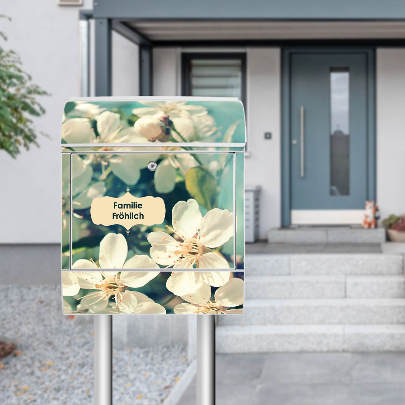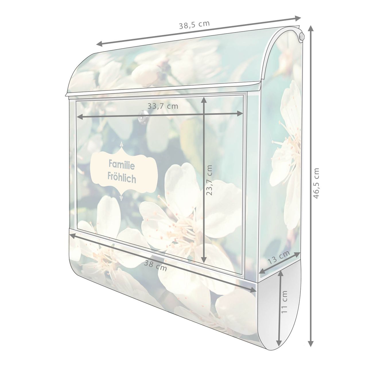 Der banjado Standbriefkasten mit Motiv Motiv Kirschblüten 2 kombiniert großzügigen Stauraum mit modernem Design. Durch das geräumige Fach finden auch große A4-Sendungen problemlos Platz. Die integrierte Zeitungsrolle sorgt dafür, dass Tageszeitungen und Magazine separat und griffbereit untergebracht sind. Der pulverbeschichtete Standfuß ist farblich passend zum Briefkasten gestaltet und sorgt für ein stimmiges Gesamtbild. Mit dem individuellen Motiv setzen Sie einen optischen Akzent, der sowohl praktisch als auch dekorativ ist.