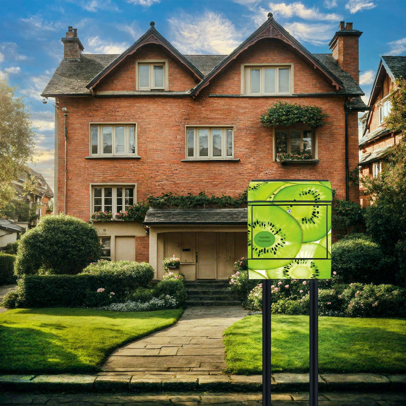 Der Standbriefkasten besteht aus pulverbeschichtetem Stahl und ist insgesamt ca. 161,5 x 47 x 16 cm groß. Das Motiv wird auf eine wetter- und UV-beständige Folie aufgebracht und mit einem robusten Schutzlaminat versiegelt. Damit bleibt die Farbbrillanz auch bei Sonne und Regen lange erhalten. Für einen sicheren Halt empfehlen wir, den Standbriefkasten mindestens 15 cm einzubetonieren. Jeder Briefkasten wird in Sachsen in einer kleinen Manufaktur von Hand veredelt - Sie erhalten ein Stück langlebige Handarbeit, das Funktionalität und Design vereint.