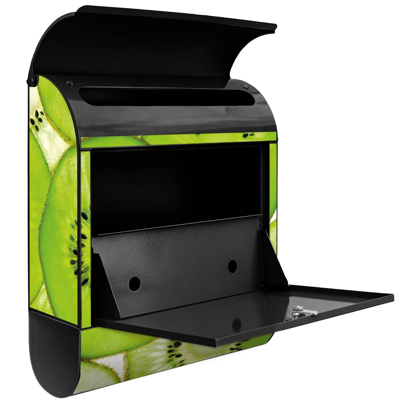 Der banjado Standbriefkasten mit Motiv Motiv Kiwi kombiniert großzügigen Stauraum mit modernem Design. Durch das geräumige Fach finden auch große A4-Sendungen problemlos Platz. Die integrierte Zeitungsrolle sorgt dafür, dass Tageszeitungen und Magazine separat und griffbereit untergebracht sind. Der pulverbeschichtete Standfuß ist farblich passend zum Briefkasten gestaltet und sorgt für ein stimmiges Gesamtbild. Mit dem individuellen Motiv setzen Sie einen optischen Akzent, der sowohl praktisch als auch dekorativ ist.