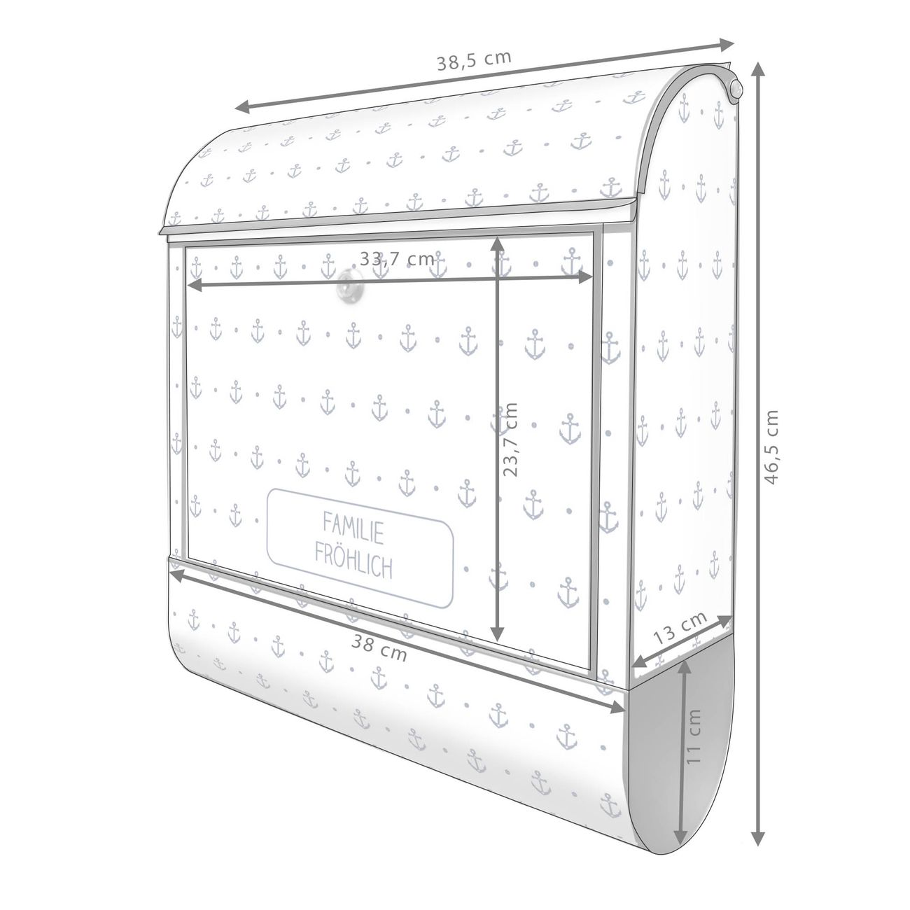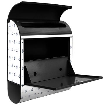 Der banjado Standbriefkasten mit Motiv Motiv Kleine Anker kombiniert großzügigen Stauraum mit modernem Design. Durch das geräumige Fach finden auch große A4-Sendungen problemlos Platz. Die integrierte Zeitungsrolle sorgt dafür, dass Tageszeitungen und Magazine separat und griffbereit untergebracht sind. Der pulverbeschichtete Standfuß ist farblich passend zum Briefkasten gestaltet und sorgt für ein stimmiges Gesamtbild. Mit dem individuellen Motiv setzen Sie einen optischen Akzent, der sowohl praktisch als auch dekorativ ist.