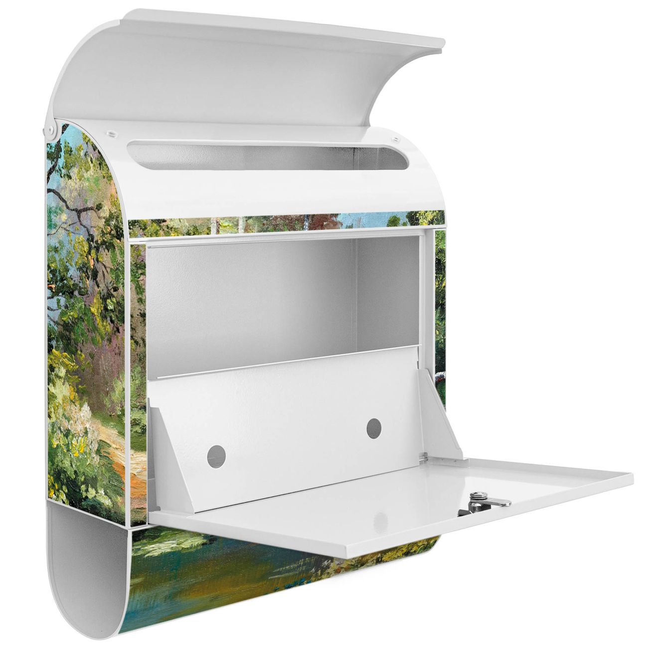 Der Standbriefkasten besteht aus pulverbeschichtetem Stahl und ist insgesamt ca. 161,5 x 47 x 16 cm groß. Das Motiv wird auf eine wetter- und UV-beständige Folie aufgebracht und mit einem robusten Schutzlaminat versiegelt. Damit bleibt die Farbbrillanz auch bei Sonne und Regen lange erhalten. Für einen sicheren Halt empfehlen wir, den Standbriefkasten mindestens 15 cm einzubetonieren. Jeder Briefkasten wird in Sachsen in einer kleinen Manufaktur von Hand veredelt - Sie erhalten ein Stück langlebige Handarbeit, das Funktionalität und Design vereint.