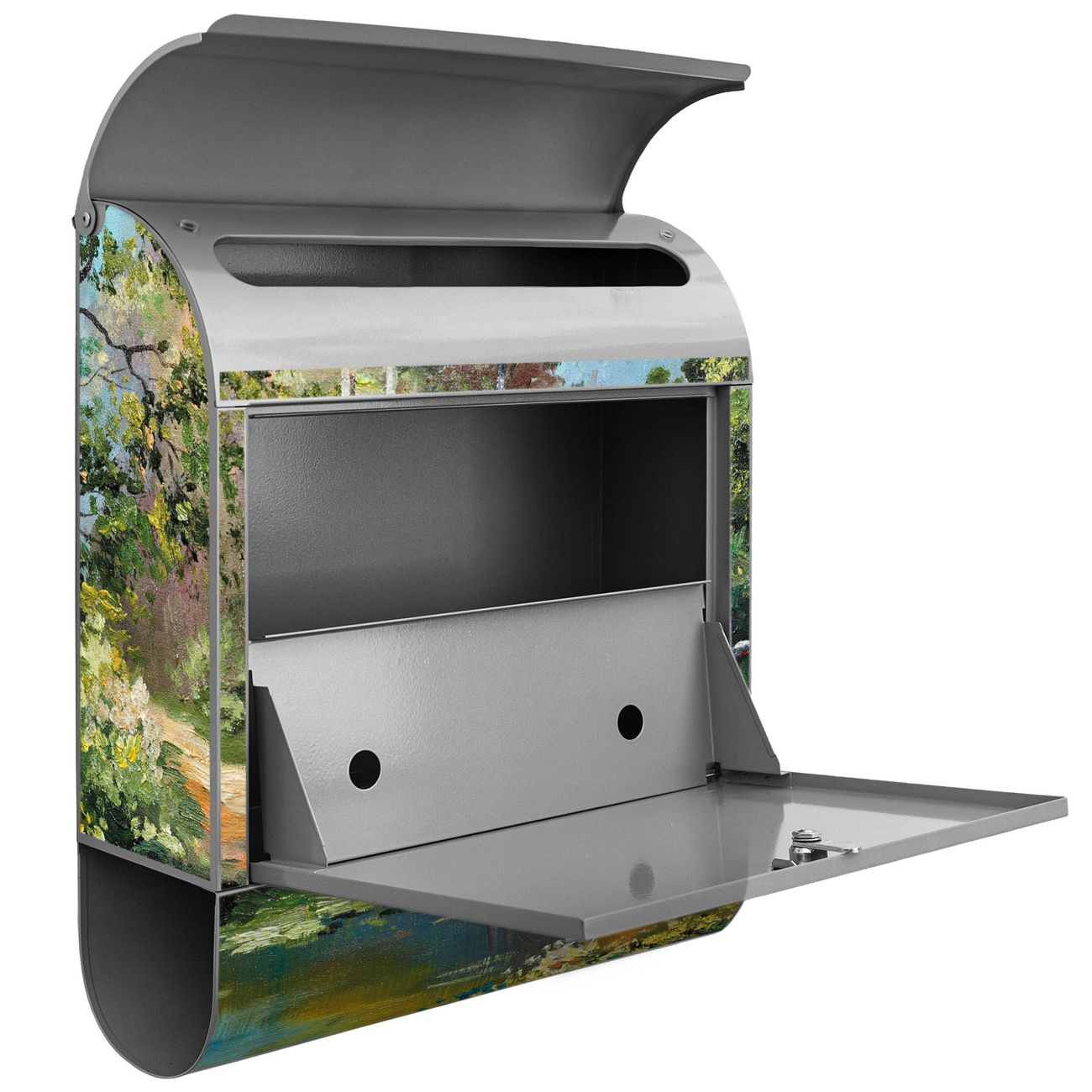 Der Standbriefkasten besteht aus pulverbeschichtetem Stahl und ist insgesamt ca. 161,5 x 47 x 16 cm groß. Das Motiv wird auf eine wetter- und UV-beständige Folie aufgebracht und mit einem robusten Schutzlaminat versiegelt. Damit bleibt die Farbbrillanz auch bei Sonne und Regen lange erhalten. Für einen sicheren Halt empfehlen wir, den Standbriefkasten mindestens 15 cm einzubetonieren. Jeder Briefkasten wird in Sachsen in einer kleinen Manufaktur von Hand veredelt - Sie erhalten ein Stück langlebige Handarbeit, das Funktionalität und Design vereint.