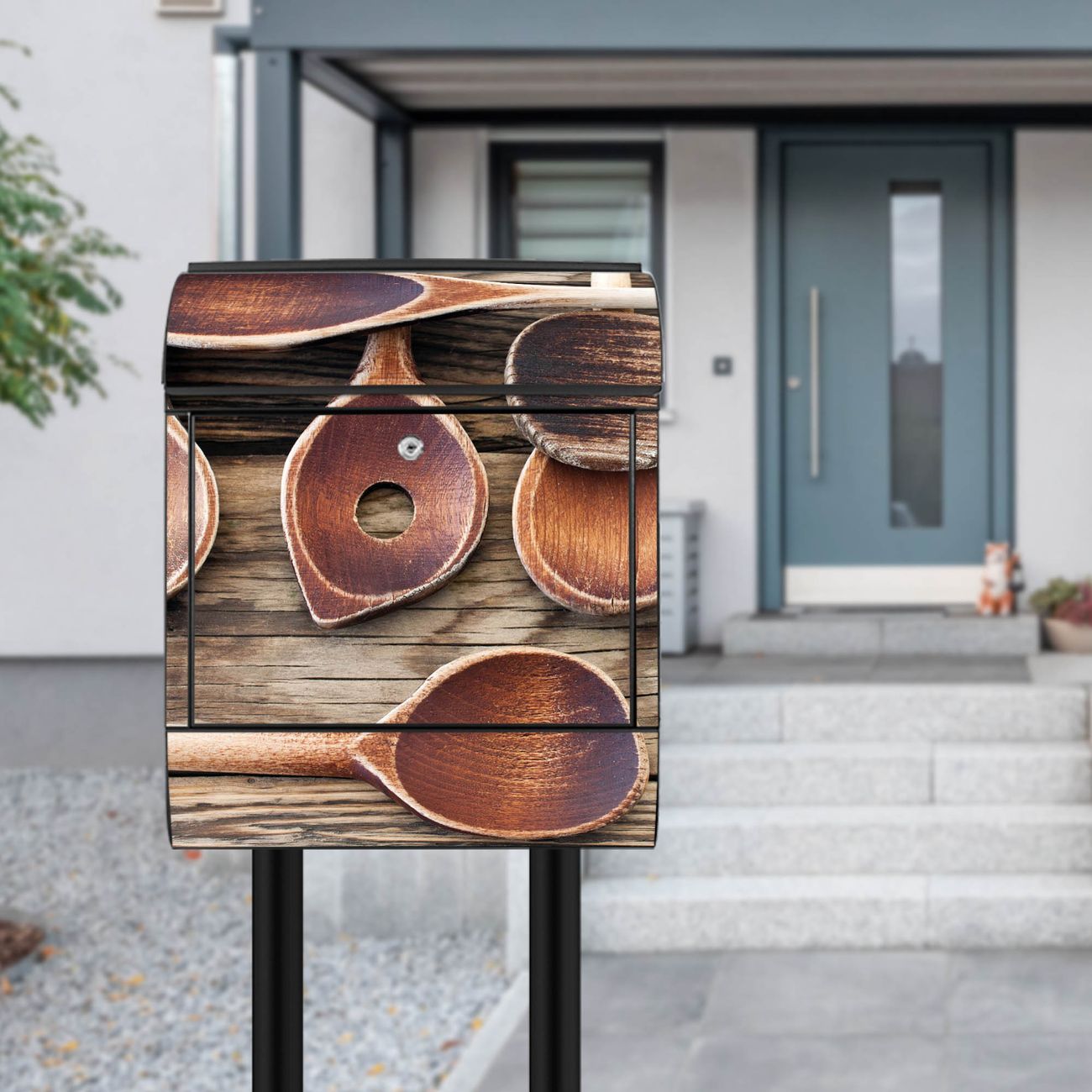 Der banjado Standbriefkasten mit Motiv Motiv Kochlöffel kombiniert großzügigen Stauraum mit modernem Design. Durch das geräumige Fach finden auch große A4-Sendungen problemlos Platz. Die integrierte Zeitungsrolle sorgt dafür, dass Tageszeitungen und Magazine separat und griffbereit untergebracht sind. Der pulverbeschichtete Standfuß ist farblich passend zum Briefkasten gestaltet und sorgt für ein stimmiges Gesamtbild. Mit dem individuellen Motiv setzen Sie einen optischen Akzent, der sowohl praktisch als auch dekorativ ist.