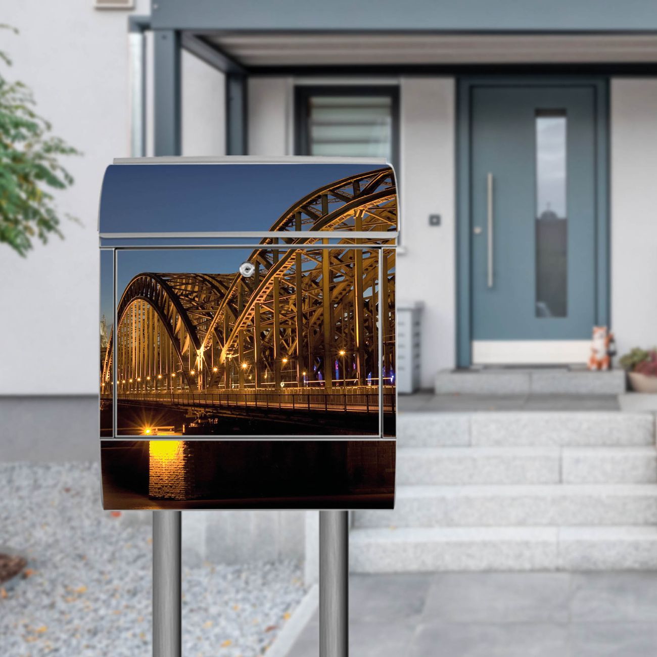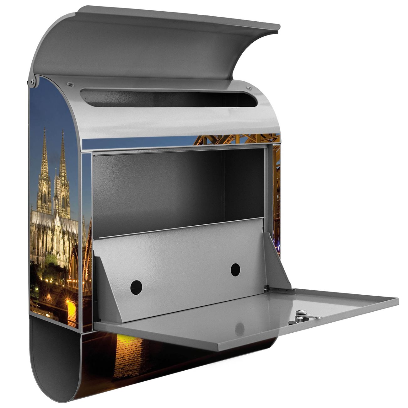 Der banjado Standbriefkasten mit Motiv Motiv Köln kombiniert großzügigen Stauraum mit modernem Design. Durch das geräumige Fach finden auch große A4-Sendungen problemlos Platz. Die integrierte Zeitungsrolle sorgt dafür, dass Tageszeitungen und Magazine separat und griffbereit untergebracht sind. Der pulverbeschichtete Standfuß ist farblich passend zum Briefkasten gestaltet und sorgt für ein stimmiges Gesamtbild. Mit dem individuellen Motiv setzen Sie einen optischen Akzent, der sowohl praktisch als auch dekorativ ist.